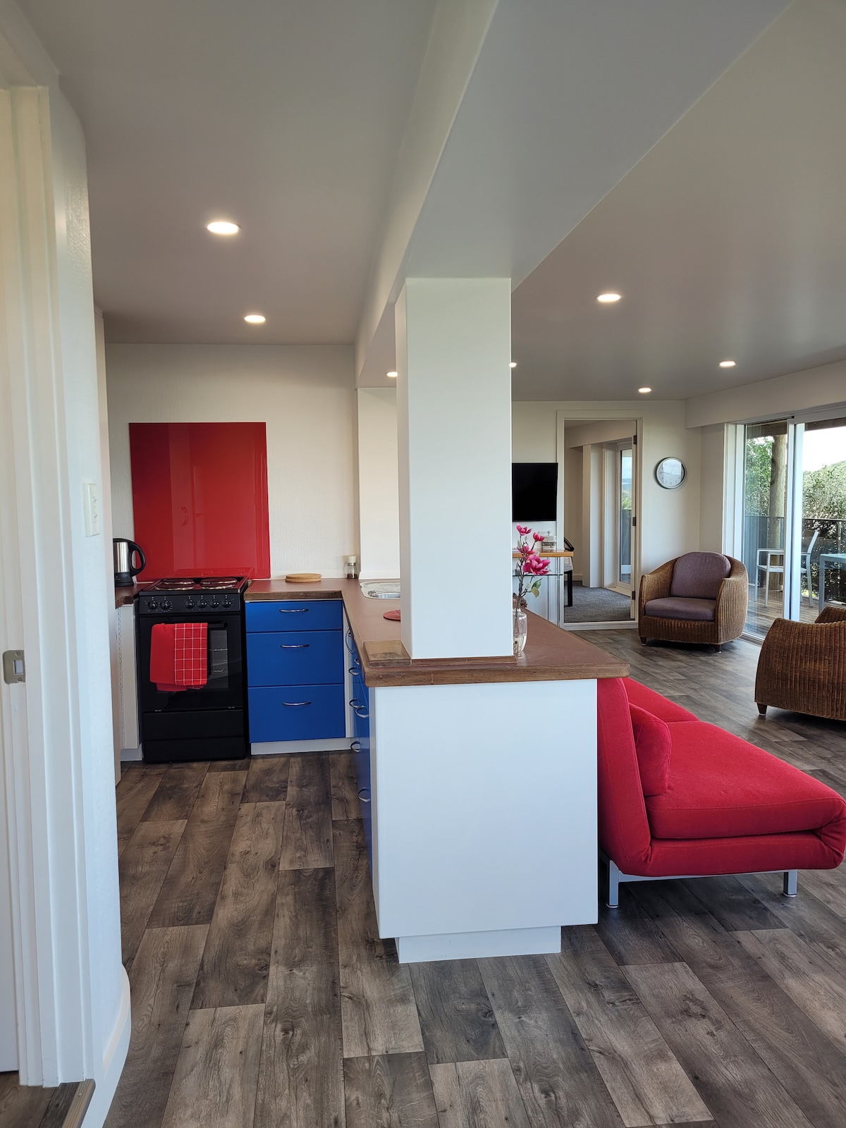 Newly refurbished ground floor 2-bedroom apartment with large living area, garden and outdoor space, 100 metres to the beach. Perfect for exploring the Hokianga area, relaxing on the beach, and walking in the forest. Very comfortable accommodation with all you need for a week or two's holiday, or for an overnight stay.