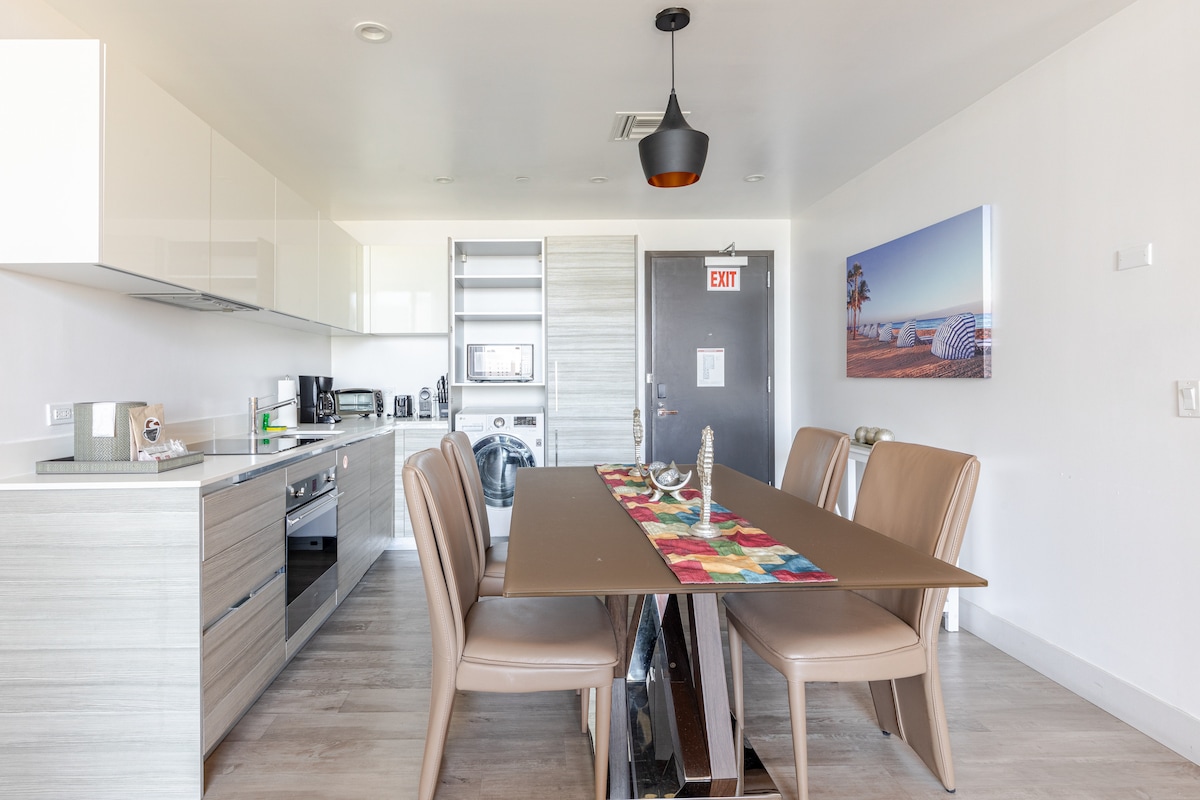 Odsjednite u luksuznom 43. penthausu okruženom savremenom umetnošću koja grli tirkizno more, sa zadivljujućim pogledom na okean sa sadržajima u stilu odmarališta Savršena lokacija za uživanje u Majamiju ✔Glavna spavaća soba: bračni krevet, ormar za hodanje, kada Soba ✔za goste: 2 bračna kreveta, privatno kupatilo ✔Potpuno opremljena kuhinja, televizor, kauč, mašina za pranje i sušenje veša ✔Dvostruke terase na palubi sa roštiljem ✔2 beskonačna bazena i đakuzi Tereni ✔za teretanu, tenis, košarku i skvoš ✔Brzi Wi-Fi ✔5 minuta hoda do kluba na plaži/na plaži Pogledajte više u nastavku!