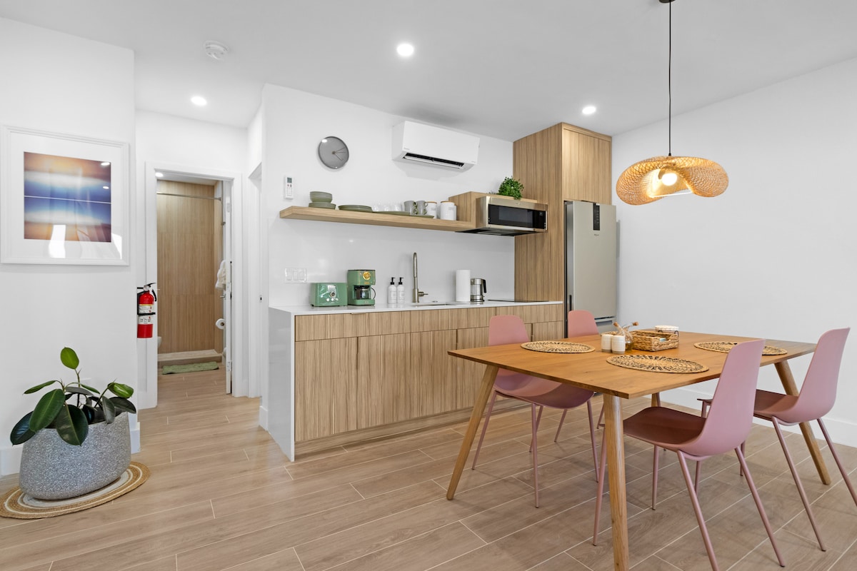 Odmorite se u ovom modernom smeštaju inspirisanom BoHo-om i uživajte u izgledu i osećaju koji dolazi sa teritorijom. Svaki prostor je pažljivo uređen imajući vas u vidu, pa se pripremite da se zaljubite! Uživaćete u PAMETNOM televizoru od 65inča, 1 GB internetu i potpuno opremljenoj kuhinji! Vrhunska usluga i sadržaji su vaši da uživate u svom superdomaćinu sa 5 zvezdica! Besprekorno čisto i potpuno u skladu sa svim protokolima za higijenu i bezbjednost AirBnb-a. Samo 5 minuta od plaže i 15-20 minuta od aerodroma.