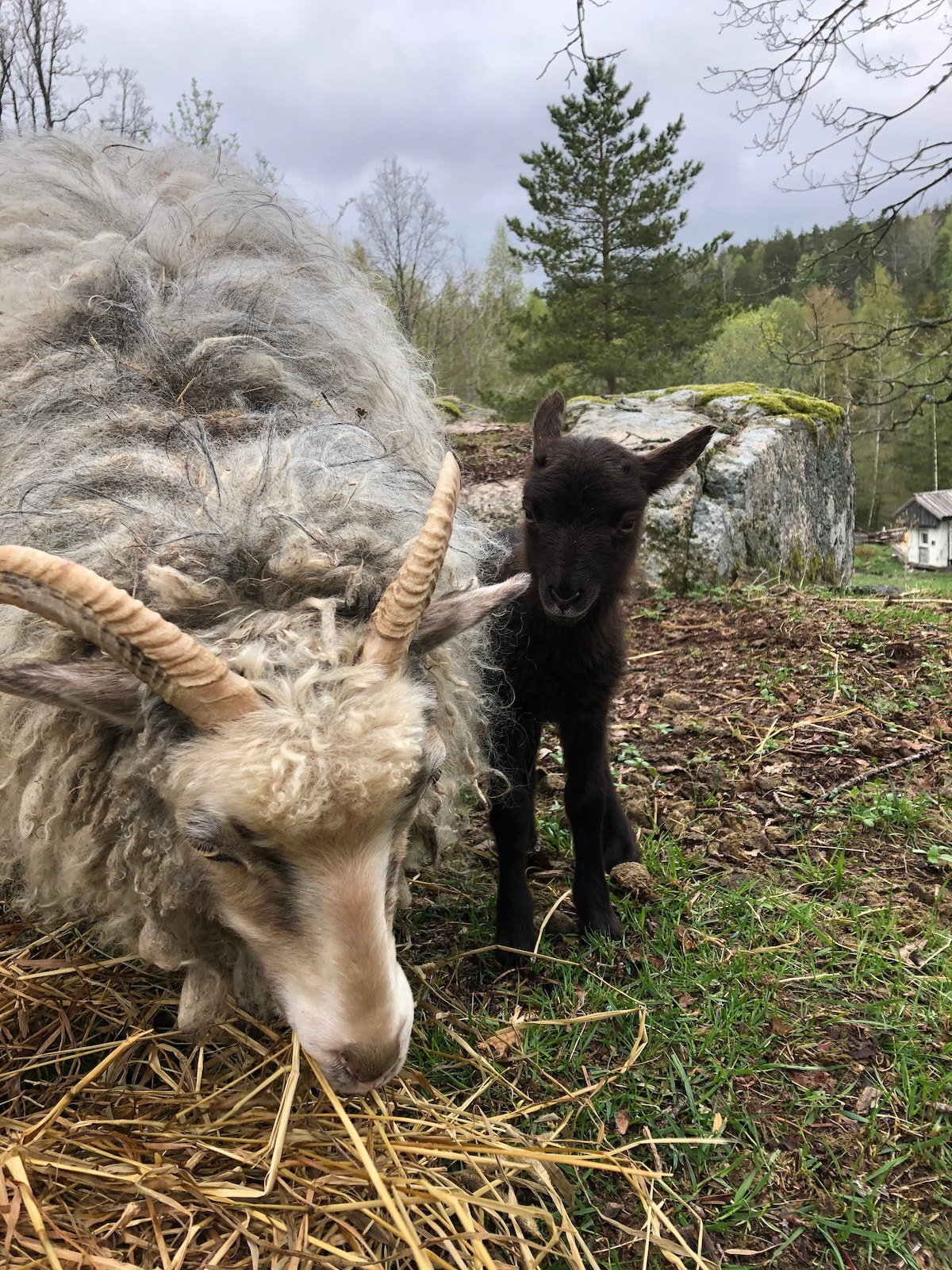Koselig sted på bondegård med dyr og eget ysteri.
