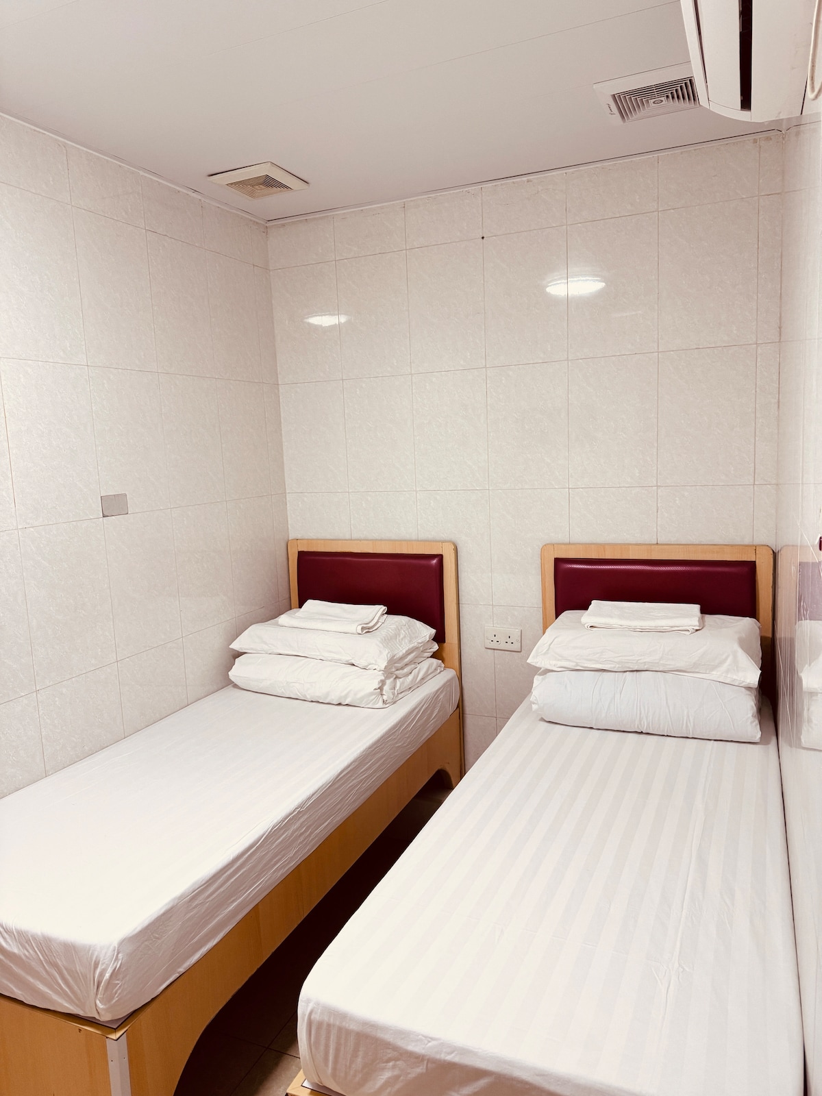 En-suite private rooms: - 2 double decker bunk beds - Private bathroom - Fresh towel & linen - Shampoo & soap - Free Fibre Optic Wifi - Free cold / hot drinking water - 24 hours hot shower & A/C - Communal area for relax