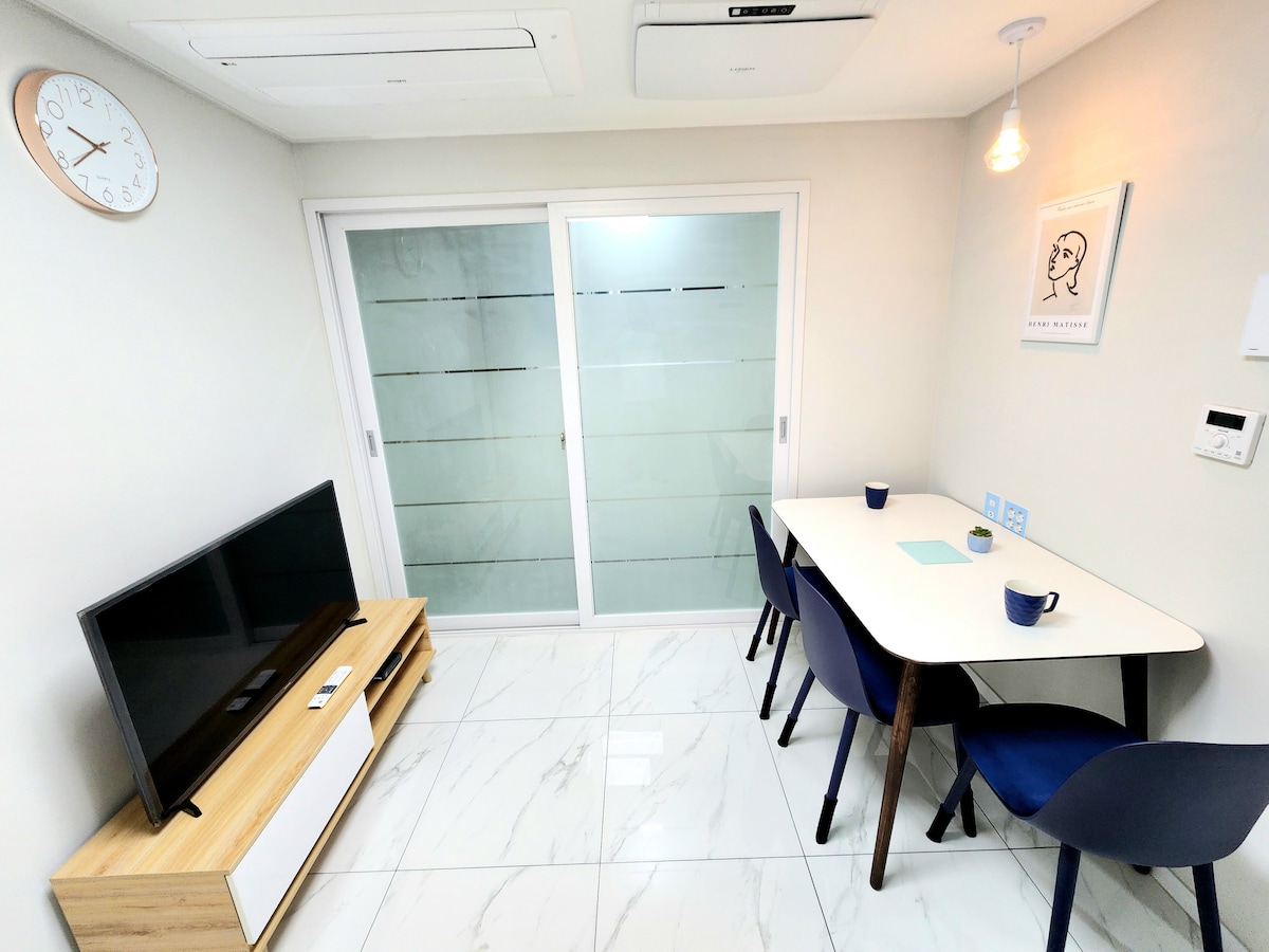 Ovo je smještaj u kojem možete udobno da boravite dok uživate u Hongde Life. • 1 bračni krevet u svakoj od 2 spavaće sobe (najviše 4 osobe mogu udobno da žive) • 7 minuta od stanice Univerziteta Hongik • 2 kreveta (bračni) • 1 minut hoda od glavne kapije Hongdeja, 1 minut hoda od ulice Hongde • Prodavnica mješovite robe u smještajnoj zgradi • Obezbijeđen je Wi-Fi u smještaju. Od 2020. godine poslujemo kao privatni smještaji i radionice, a od jula 2024. ponovo ćemo početi da ugošćavamo putem AIRBnB-a. * Trenutno se unutrašnja dekoracija može malo razlikovati od prethodnih fotografija.