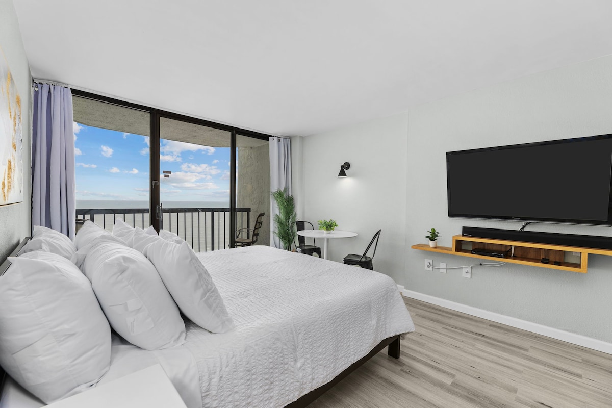 Dobro došli u svoj smeštaj na plaži Mirtl Bič – svetli, opuštajući smeštaj sa pogledom na obalu i pogodnostima tokom cele godine! - Za 4 osobe | 1 spavaća soba | 2 kreveta | 1 kupatilo - Direktno na okeanu sa privatnim balkonom - Zajednički unutrašnji i otvoreni bazeni (ukupno 6 bazena) (otvoreni tokom cele godine) i 10 zajedničkih đakuzija, 2 lenje reke - Kuhinja, Wi-Fi i namenski radni prostor - Zajednička teretana u blizini, plus arkadne igre i kuglanje – Pogodno za porodice sa igralištem na otvorenom