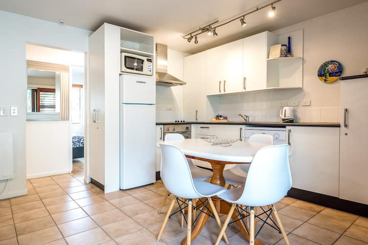 Smješten u apartmanima na plaži Onetangi u prizemlju među zadivljujućim baštama palmi, ovaj stan je savršen za porodice ili veće grupe koje žele da budu u istom području. Dvorišna bašta je sigurna zona za igru za mališane. Nururni dvosobni stanovi spavaju do četiri gosta. Imaju jedan bračni krevet, plus jedan bračni krevet i sofa na razvlačenje (uz doplatu za sofu). nNOTE: Nema dodatnih skrivenih troškova! nSve posteljine i potrošni materijal.