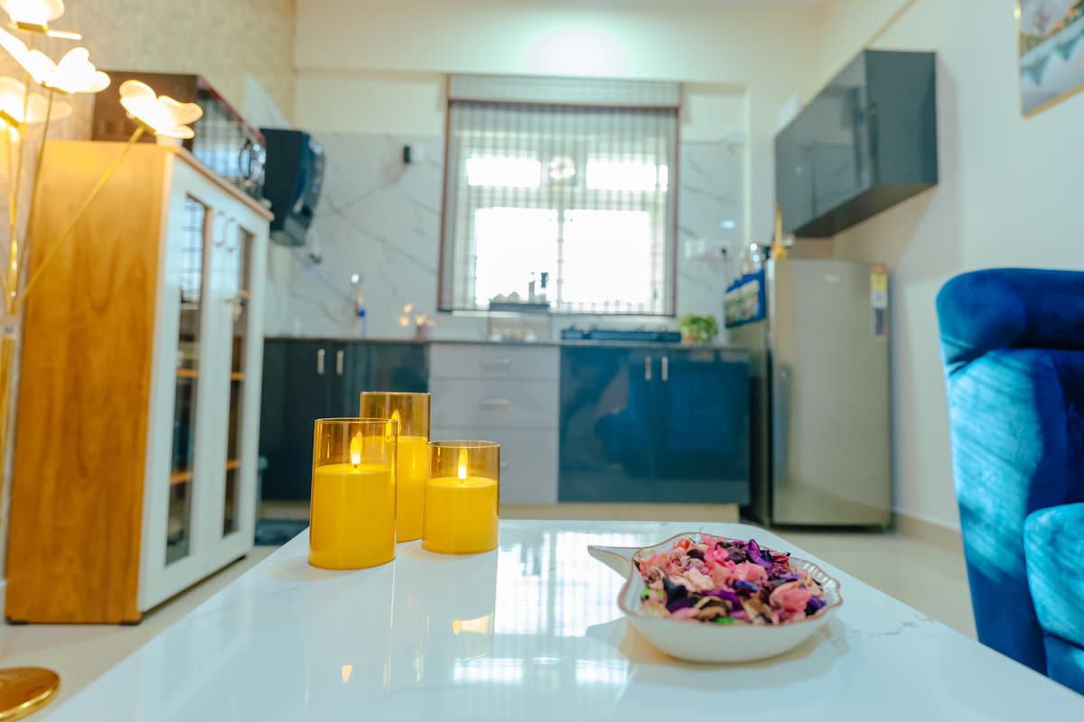 It’s a cozy Blossomly 1BHK in the prime location of HSR Layout. Perfect for business , travellers or couples, space offers a comfortable Bed, fast WiFi, a fully equipped kitchen, attached bathroom and a peaceful vibe. Located close to cafes, supermarkets, and parks, it’s ideal for both work and relaxation ! Apart from the great location, your host me will always be just a call away during your stay. I truly believe that guests are the utmost priority ! See you at Blossomly :)