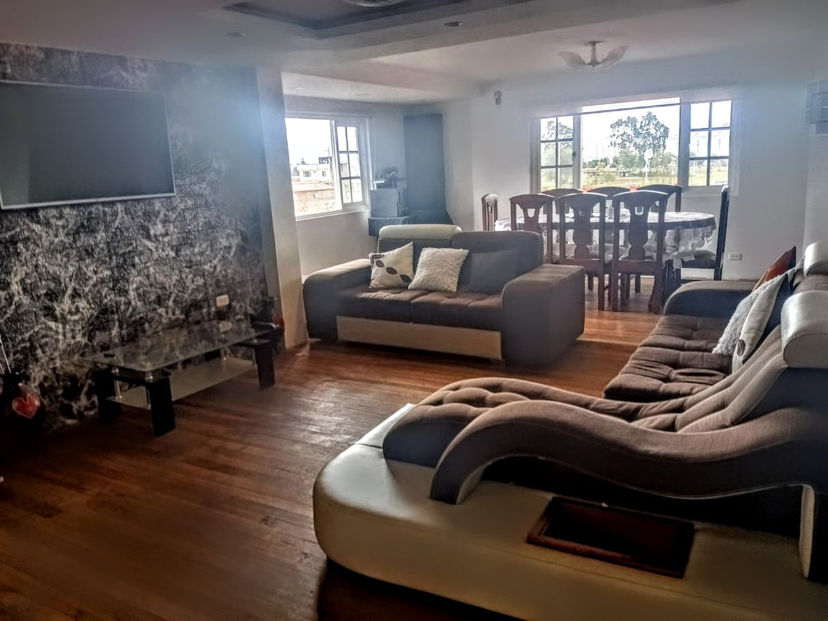 Kuća sa zasebnom garažom. Nalazi se na 3 minuta od novog južnog autobuskog kolodvora, 7 minuta od tržnog centra Mall de los Andes automobilom na 5 minuta vožnje od Tehničkog univerziteta Ambato. Ima 3 spavaće sobe, 1 glavnu spavaću sobu (krevet sa 2 sjedišta 1/2) sa nezavisnim kupatilom, 2 standardne sobe. Udobna soba s Wi-Fi mrežom, električnim kaminom i 60 u plazmi. Kuhinja opremljena rernom, frižiderom i kuhinjskim priborom. Spoljašnji prostor za opuštanje.