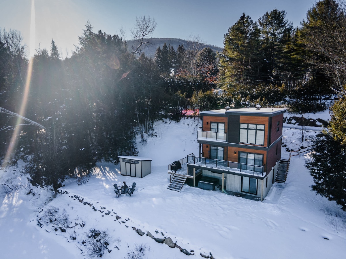 Kontaktirajte nas za našu tekuću promociju! Staklena brvnara arhitekte na osami smještena za pogled na planine Mont-Tremblant koji oduzima dah! Klint Tremblant (litica na danskom) je jedinstven dizajn tako da možete da se povučete u udobnost i luksuz. To je veličanstveno zastakljen arhitektonski prostor koji kombinuje prirodnu jednostavnost i savremeni luksuz, 10 minuta od sela Mont-Tremblant i panoramske terase i privatne hidromasažne kade u Laurentianu. Dizajnirao ga je poznati kanadski dizajner u zajedničkom domenu od 1200 hektara!