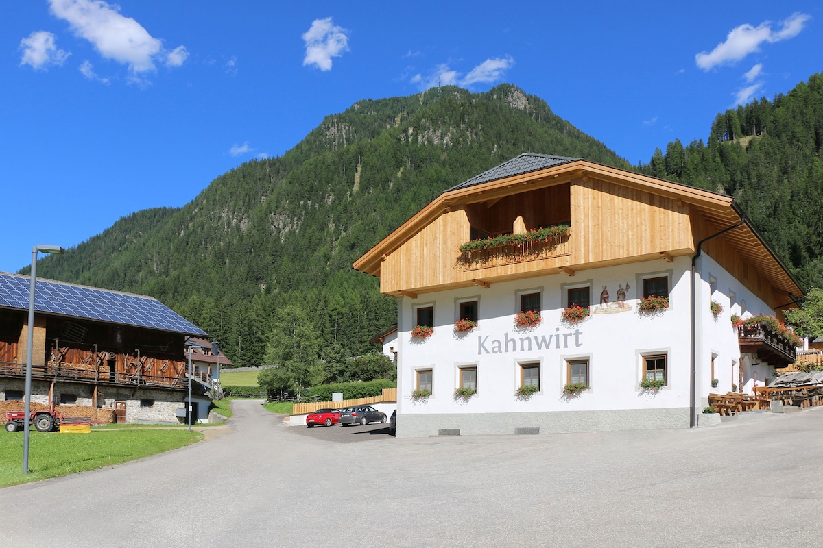 Naša kuća je u Antholz Obertalu daleko od sela na mirnoj i sunčanoj lokaciji. Okruženi smo livadama i šumama koje vas pozivaju da se opustite. Ljeti je naša kuća idealna polazna tačka za naše poljoprivredne alpske pašnjake i naš prelepi planinski svet. Zimi možete koristiti savršeno uređene padine u našem biatlonskom centru i na prelepom skijalištu Kronplatz. Pored toga, tu su i dve staze za sanjkanje na kojima se upravlja kolibe u Antholzertalu.