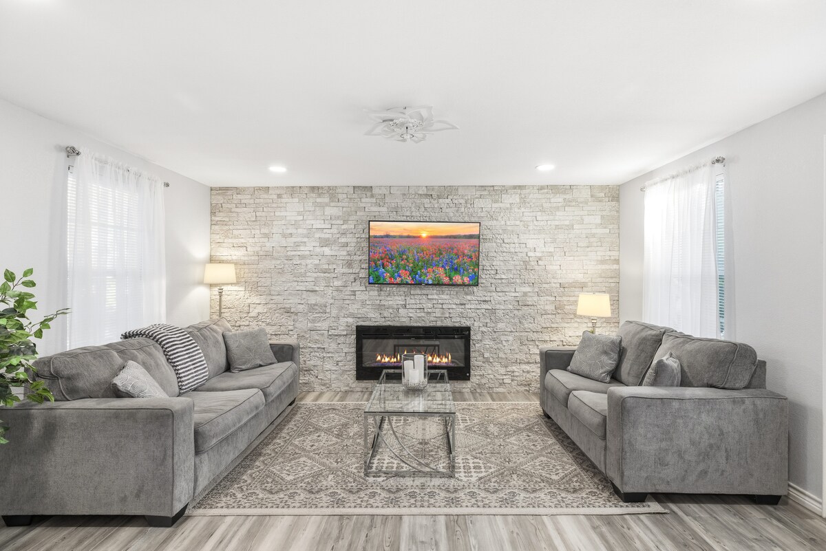 Welcome to this thoughtfully renovated duplex centrally located on West Main St. in Kerrville. This is home is perfect for a romantic or a family get away. This home away from home is funky yet cozy, modern but warm, central but private. You will find the convenience of the location to be a perfect start to any adventures you have planned! You are only: 1 minute from the Kerrville River trail. 3 minutes from Downtown Kerrville. 30 minutes from Historic Fredericksburg.