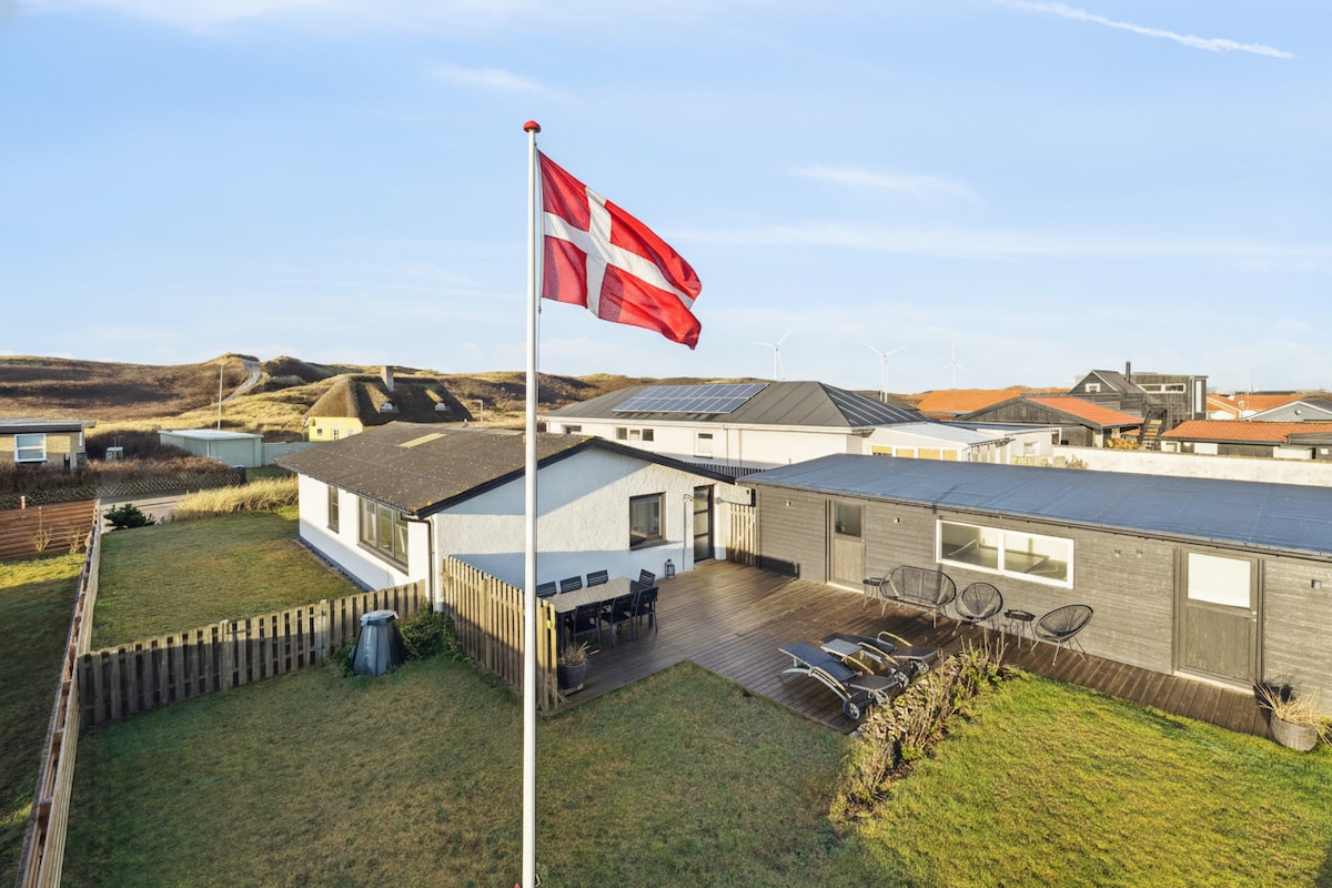 Cijena ne uključuje potrošnju struje i vode. Velnes kućica u Hvide Sandeu za 8 osoba - 300 m od Sjevernog mora i 400 m od Fjorda Ringkøbing! Otvorite raspored sa velikim prozorima i pogledom na dine. Uživajte u kadi u divljini, unutrašnjoj infracrvenoj sauni, prostoriji za aktivnosti sa bilijar/bilijarskim stolom, šporetu na drva, punjaču za električne automobile, besplatnom Wi-Fi-ju, Chromecast TV-u i roštilju. Savršeno za opuštanje i avanturu, samo 6 km od centra Hvide Sandea. Doživite ljepotu i udobnost danske Zapadne obale – idealno za porodični odmor ili ljubaznost!