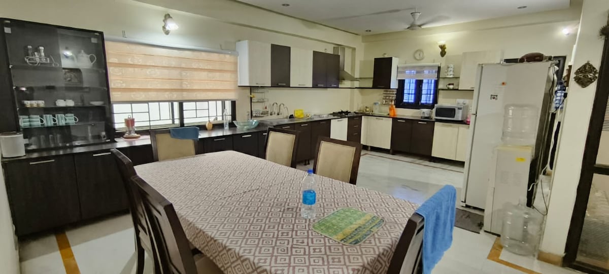 Luksuzan, udoban i samo 5 minuta od Hi-Tech Cityja, ovaj stan na 1. spratu je savršen za: - Porodica ili prijatelji od 2 do 13 osoba, gosti vjenčanja, NRI-ovi itd., kojima je potreban smještaj u centru grada i dnevna usluga sobarice. - Zaposleni koji rade na daljinu i kojima je potreban brzi Wi-Fi, potpuno opremljena kuhinja i rezervno napajanje invertera. - Parovi koji žele kratkoročni boravak i opuštanje ispred 55" 4K-smartTV-a - Prijatelji kojima je potreban privatni smještaj za druženje u gradu - Posjetioci Jašode, AIG