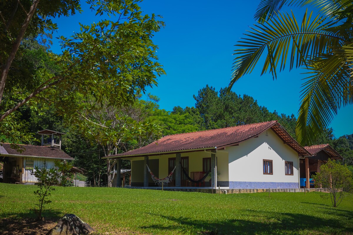 Casa inteira - Linda casa de campo localizada em Apiúna -SC. Amplo espaço interno com 1 suíte e 2 quartos, banheiro social, cozinha e área de serviço. Área de festas com churrasqueira, fogão de lenha, piscina e banheiro externo . Amplo jardim, com pomar (colha suas frutinhas direto do pé), lagoa de peixes (disponível para pesca e consumo local) e muito ar puro. Usufrua deste delicioso espaço com sua família e/ou amigos, você não vai se arrepender. Aguardamos por você!