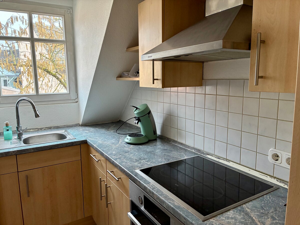 Udobno namješten, svijetao, prostran i prikladan za porodice (stepenice!) u oblasti Taunus. 75 m2 za 4-5 osoba. Zabranjeno pušenje. Sa spavaonicama, kosim plafonima i panoramskim pogledom na dolinu. Veliki dnevni boravak/trpezarija, 2 spavaće sobe, kupatilo s dnevnim svjetlom +kada+WC šolja, toalet za goste, namještena kuhinja+skladište. S-Bahn vezai blizina autoputa (A3), Wi-Fi, sat TV. Za praznike u regionu Rajna-Majn, planinarenje u Taunusu, posjetioce sajma ili kao smještaj za montere.