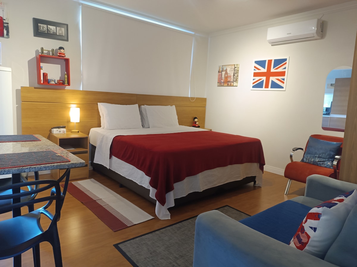 Udoban i moderan studio! Posteljina i hotelsko kupatilo! Neophodno je poslati puno ime i CPF. Nema slobodnih mesta uključenih u dnevnu cenu. Podzemna garaža za parkiranje. Ne dozvoljavamo posjetioce, samo prethodno registrovane goste. Ne prihvatamo rezervacije za treća lica, jedan od gostiju mora da bude podnosilac zahteva za rezervaciju.