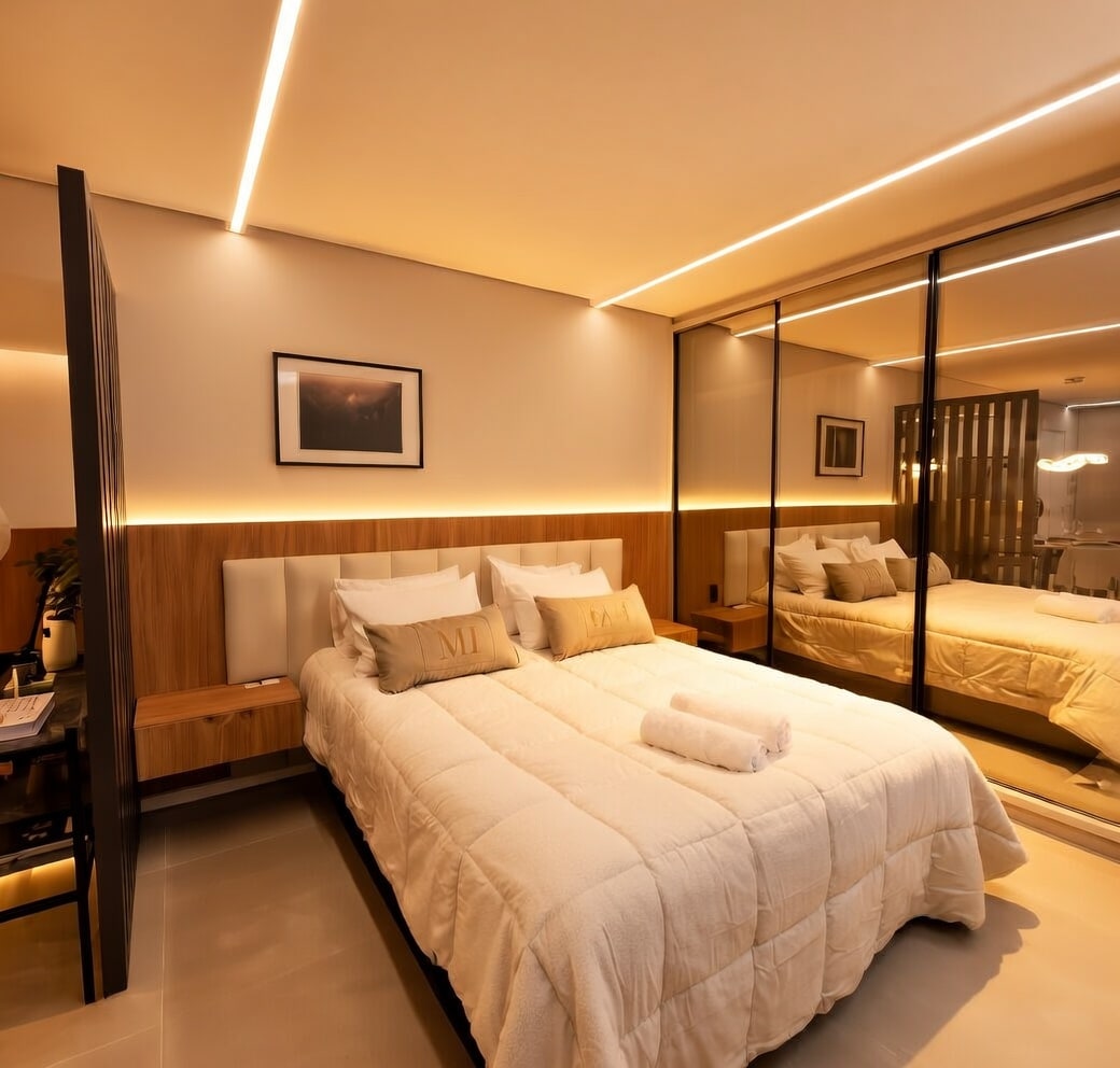 Loft aconchegante e estiloso, com marcenaria planejada, localizado em uma das melhores regiões da cidade. Próximo ao Centreventos, Teatro Bolshoi, padarias, bares, restaurantes, farmácias, comércios e parques. O LOCAL: Edifício automatizado e seguro, áreas comuns planejadas, inclui academia, piscina (não aquecida), lavanderia compartilhada OMO e mercado. Prezo pelo cuidado em cada detalhe da sua experiência, com higienização adequada, orientações claras, respeito e atenção a cada hóspede.