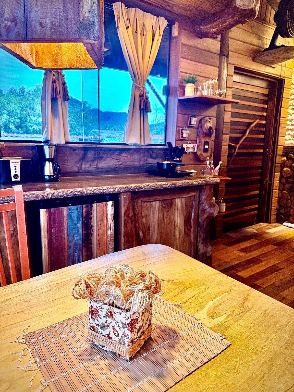 Umjetnički izgrađen bungalov u svakom detalju... otvorena kada za šumu sa staklenim plafonom pruža osjećaj da ste uronjeni u prirodu, sa stogodišnjim prednjim dijelom Figeire i mnogim pticama...intimno i gostoljubivo u vezi sa prirodom u kontaktu sa ovim rezervnim područjem Atlantske šume. Drugi topli tuš se nalazi na otvorenoj terasi za šumu i ukusan je danju ili noću sa zvijezdama, nebom i mjesečinom.