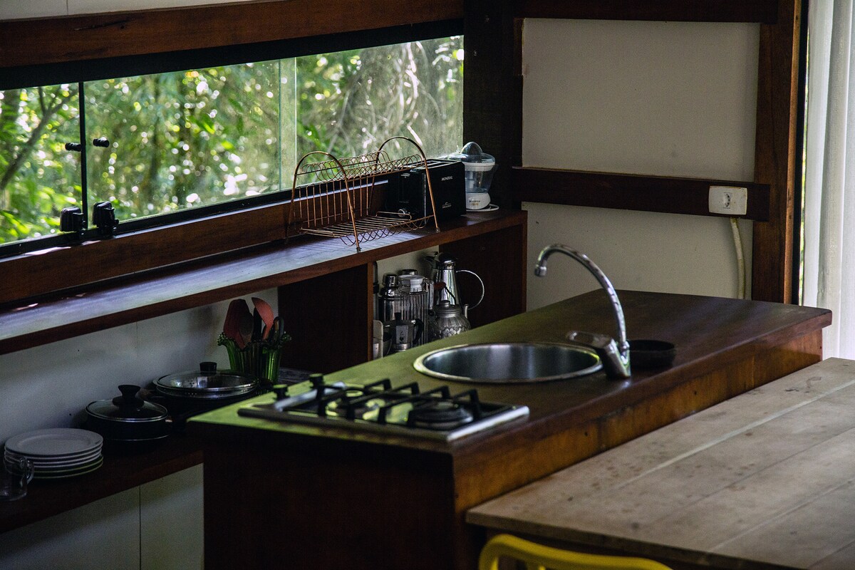 Šumska brvnara nije samo smještaj za odmor, već je jedno od onih mjesta koja posjećujete i ne zaboravite. Brvnara ima senzacionalan pogled (na tipičnu atlantsku šumu Brazila). Sa velikim prozorima koji povezuju unutrašnji prostor sa prirodom koja ga okružuje, to je tiho i mirno mesto. Idealno za parove, ali ako ima 3 osobe, imamo kauč u dnevnoj sobi.