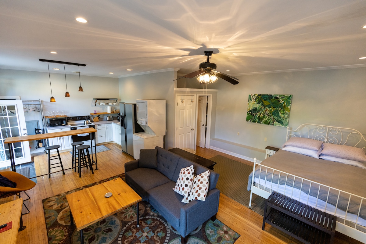 Moderna, nedavno renovirana kuća za kočije u Atlanti u Džordžiji, sa brzim pristupom železničkoj pruzi BeltLine. Ovaj studio otvorenog tipa ima udoban bračni krevet, besplatan brzi Wi-Fi i pametni televizor. Tu je sto/radni sto dvostruke namene sa ergonomskom stolicom za rad. Kuhinja je potpuno opremljena svim sadržajima za pripremu vaših kulinarskih gozbi. Uživajte u zalascima sunca na terasi na otvorenom + roštilj na plin. Uz mnogo svetla i privatno okruženje, ova kočija pruža privatnost sa osećajem boravka u kućici na drvetu