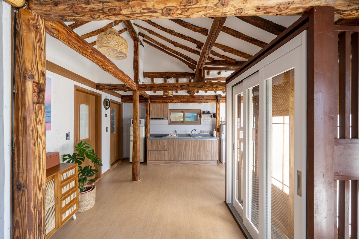 - Ovaj prostor se nalazi na drugom spratu zgrade. Ima dva spavaće sobe, dnevni boravak i kupatilo. Trgovina mješovitom robom Hwangbang GS udaljena je 1 minut. Ovo je prostrana i čisto renovirana dvospratna kuća. - Dnevni boravak je dovoljno prostran da prijatelji i porodica mogu da uživaju, a tu je i trpezarijski sto za 3 osobe. - Smještaj je dnevni boravak sa dvije sobe, trpezarijskim stolom i kuhinjom. U kuhinji se nalaze činije i lonci za kuvanje, kao i mikrotalasna rerna i šporet za pirinač. - Velika soba ima dva kreveta za jednu osobu i malu sobu sa jednim krevetom, tako da mislim da će biti udobnije mjesto za odmor. - To je prijatan prostor sa velikim televizorom u dnevnoj sobi, zvjezdanim zvučnikom i klima-uređajem u svakom prostoru. - Zidovi smeštaja su ukrašeni slikama, pa je uređen kao galerijski prostor. - The Hanok Village is 10 minutes away, and it is located 5 minutes from the new city center, and there are Seosin-dong Makgeolli Alley and Gamaekjip around the house. - Parking je dostupan ispred i u blizini kuće.