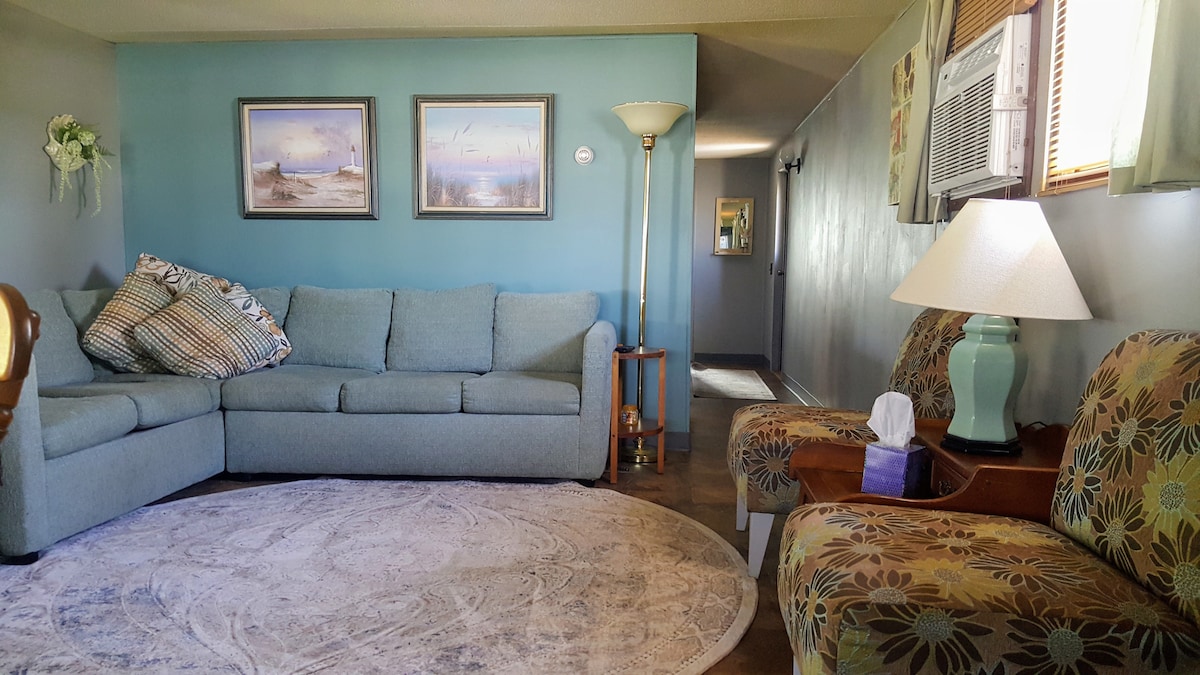 Smješten u blizini gradske vijećnice i policijske uprave, ovaj šarmantni dvosobni stan u prizemlju je čisto, bezbjedno i porodično okruženje za odmor na obali! Samo 1,5 ulica do plaže, 1 blok do prelijepe zalogajnice u zalivu i 5 blokova od centra Djuija. Potpuno namješten sa 2 bračna kreveta, udoban kauč za spavanje, kupatilo, mašina za pranje i sušenje veša, potpuno opremljena kuhinja, čista posteljina i peškiri, brzi Wi-Fi, stolice za plažu i još mnogo toga. Ja sam susretljiv, iskusan superdomaćin.