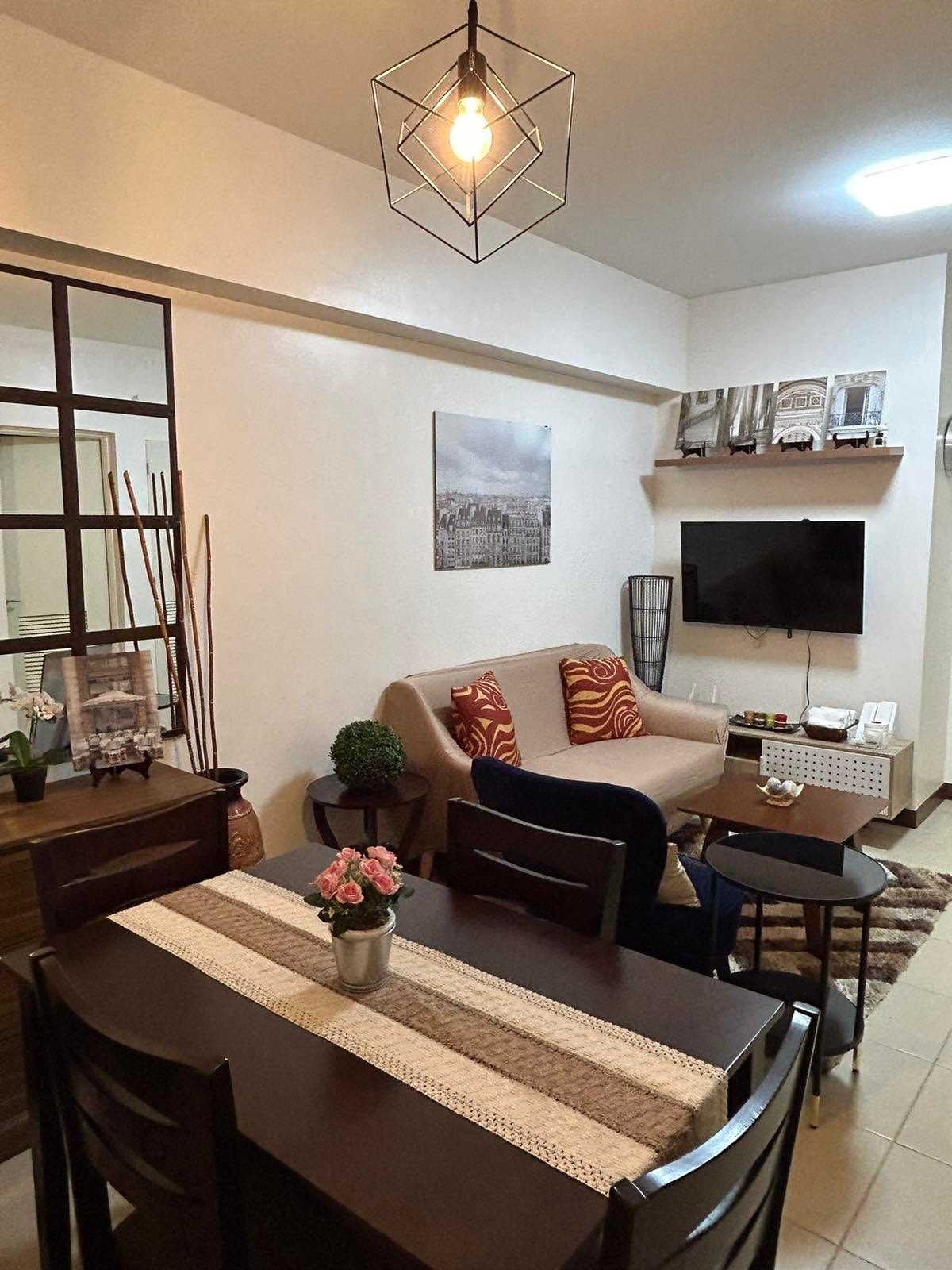 Relax with the whole family at this peaceful place to stay Bedroom Double size bed with Foam Mattress 4 large pillows 1 comforter + linen Smart Tv with Netflix Wifi Side table Aircondition Living/Dining Sofa 2-seater Dining table and chair Refrigerator Microwave oven Induction cooker Rice cooker Kettle Pot Mugs / plates / spoon&fork Trash Can 2-Mirror Bathroom Bidet Mirror Sink Water heater Shower telephone Trash Can One-time set up and freebie 2bottled water 1tissue roll SELF CHECK-IN