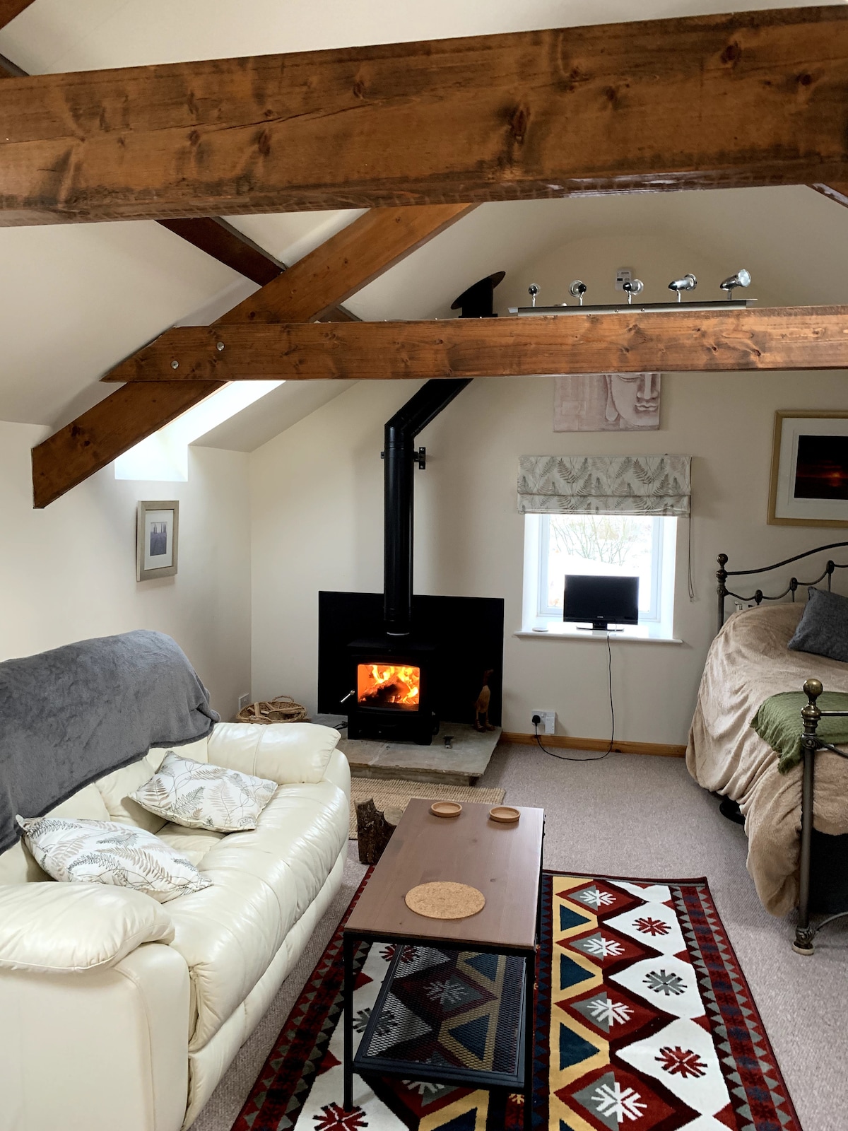 Stargazers apartment, one of two houses down a private drive. Mirna, slikovita lokacija. Bez buke ili svjetlosnog zagađenja i najmračnije nebo u Evropi. Uživajte u cijelom gornjem spratu sa otvorenim salonom/kuhinjom i istorijskim policama za knjige. Spavaća soba sa kadom, bračnim krevetom, kupatilom. To je fantastičan prostor! Odvojeni ulaz kroz prelepi stakleni atrijum sa neverovatnim pogledom. Privatna terasa za posmatranje zvezda i teleskop Maksimalno 2 gosta Zajednička bašta. Kućni ljubimci koji se uzimaju u obzir prvo pitajte.