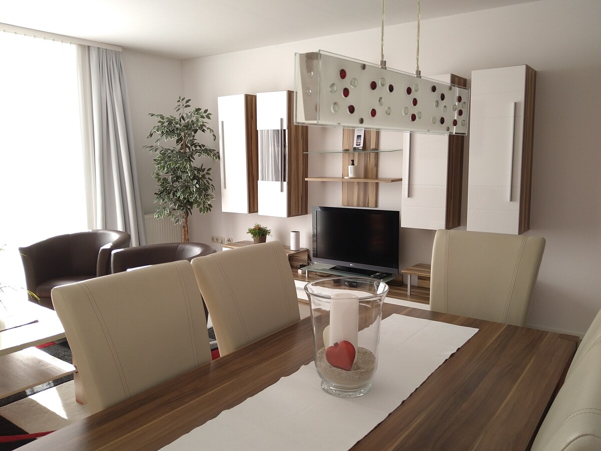 Dizajnirali smo naš porodični stan sa puno ljubavi kako bismo vam omogućili poseban boravak u porodičnoj atmosferi. Okrenut je prema istoku, tako da možete da uživate u izlasku sunca na terasi od 20 m². Wi-Fi, uključujući! Pridajemo veliku važnost tome da se naši gosti osjećaju prijatno. Zato su nam čistoća i higijena na prvom mjestu. Stan ispunjava sve trenutne higijenske standarde za bezbjedan i opuštajući odmor