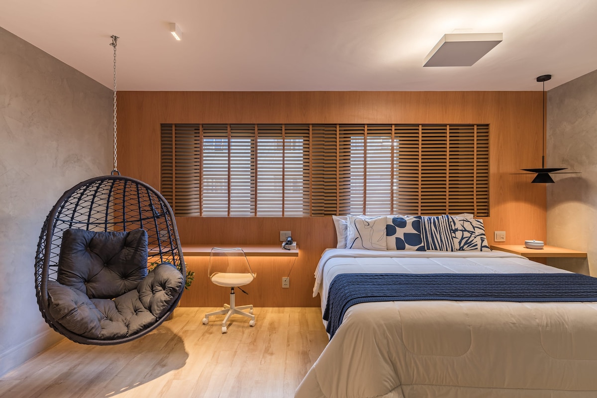 Bračni krevet (širok 150-179 cm), klima-uređaj, TV Smart 43”, svjetlovodni internet, 1 parking garaža, teretana i bazen. Pertinho da Avenida Paulista i sa jednostavnim pristupom podzemnoj željeznici. Fleksibilno vrijeme prijave i odjave! Provjerite dostupnost. :) Odlično za kućnu kancelariju: dvije nezavisne internet mreže - Vivo i Claro, obje sa 300 Mb. Svakodnevno čišćenje i pospremanje stana. Duži boravci (10ili više dana) uključuju promjenu kreveta i posteljine za kupanje.
