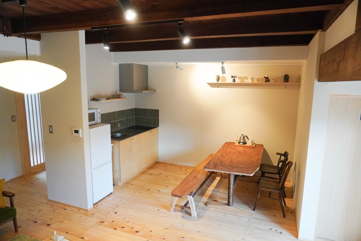 築70年の趣ある日本家屋に現代的な快適さを融合した一棟貸し。 無垢の杉板や聚楽塗の壁に囲まれた贅沢な空間で、心安らぐひとときをお過ごしください。 金華山の登山道入り口はすぐ近く、山頂の岐阜城からは絶景を一望。岐阜公園や長良川、鵜飼、大仏、川原町の街並み散策など、周辺観光も充実しています。すべて徒歩15分圏内。 室内にはシステムキッチンや陶器の自動給湯風呂、洗濯機、乾燥機、仕事部屋、キッズスペースも完備。ファミリーや一人旅、ワーケーションにも最適です。自然に包まれた静かな立地で、春には鶯のさえずり、秋には美しい紅葉が広がります。 施設周辺は坂道エリアのため、歩きやすい靴がおすすめです。 🏔 立地の魅力 • 金華山の麓 に位置した自然豊かな環境 • 登山道入口まで徒歩2分 • 岐阜城天守閣からの眺望は最高です • 岐阜公園まで徒歩10分 • 長良川も近く、鵜飼観覧(期間限定)も楽しめます • 岐阜大仏(徒歩5分)、川原町界隈(徒歩15分)など散策できます 🍽 周辺の便利な施設 (多くはありません) • コンビニ(徒歩10分) • カフェ・飲食店(徒歩5分~) • スーパー(車で8分)