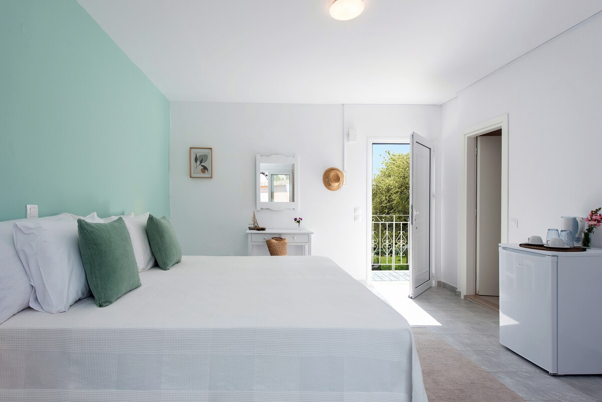 Studio soba Gialos Beach nalazi se u srcu sela Vasiliki! To je jedina privatna soba u kući koja ima potpuno opremljenu čajnu kuhinju, zajedno sa malim privatnim kupatilom bez tuš kabine. Soba ima veliki prednji prozor i balkonska vrata, kao i dugačak prelijepi balkon sa čarobnim i punim pogledom na more. Napominjemo da od januara 2025. godine postoji dodatna državna poreska naknada od 8 € po noćenju, koja se naplaćuje zasebno i plaća se u gotovini po dolasku.