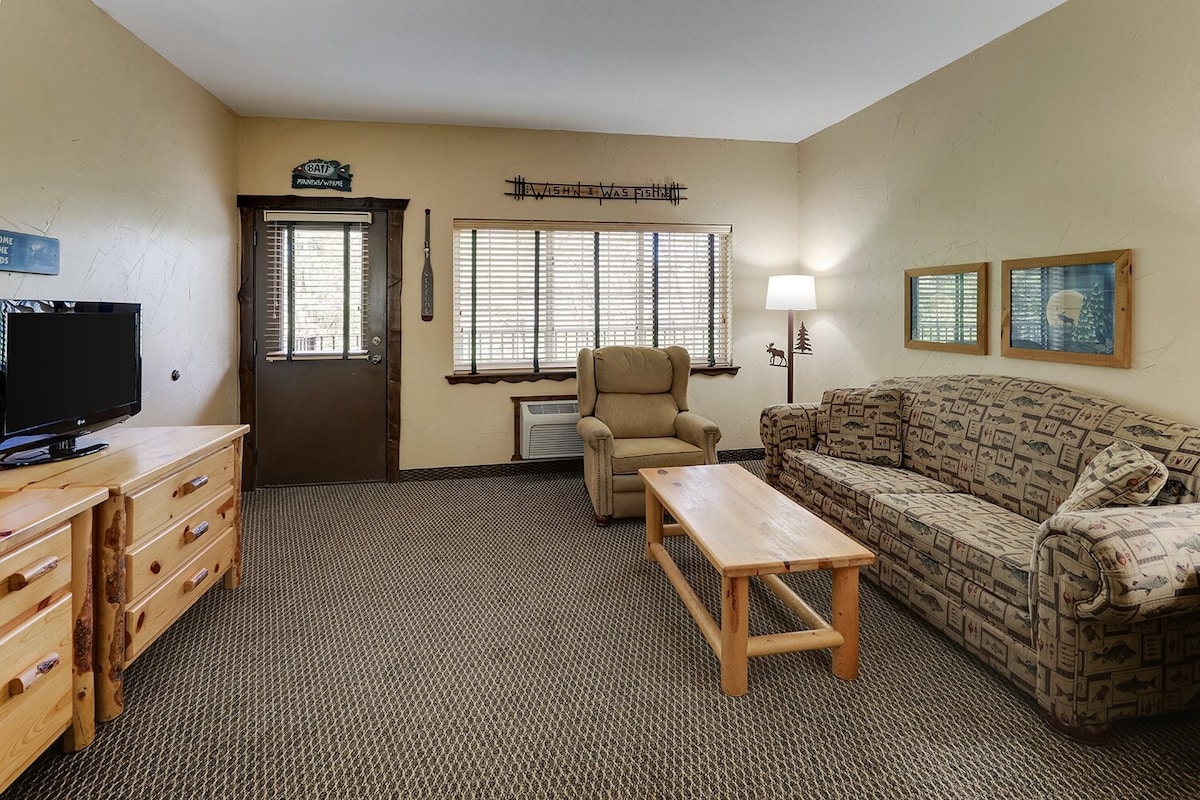 Discover comfort and relaxation in our luxurious Golden Suite. This suite offers two queen beds, a sofa-bed, 2 walk-in showers, two bathroom stalls and a private sauna. Stay entertained with the flat screen TV, and keep refreshments close at hand with the mini fridge and in-room coffee maker. Enjoy the scenic view of the Mississippi River from your private walkout while staying connected with free WiFi.