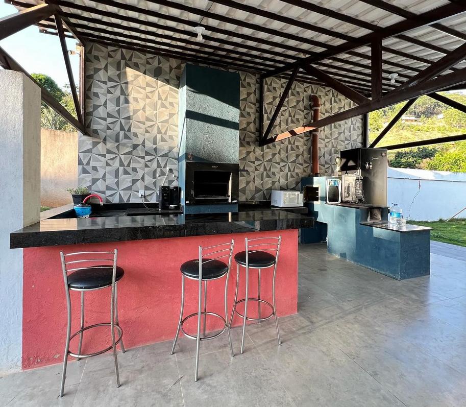 Reconecte-se à natureza. 3 quartos, sendo 1 suíte com ar-condicionado e demais quartos com ventilador de teto. Nos quartos 1 cama casal king e 1 cama de solteiro com espaço para colchão. Sinuca completa, mesa de baralho, Campo com trave para futebol, rede de vôlei e peteca. Piscina com piso anti-derrapante, iluminação por controle remoto, hidromassagem. Área gourmet com churrasqueira e fogão à lenha. Portão eletrônico, câmeras de segurança, todo iluminado por refletores. Tem Wi-Fi