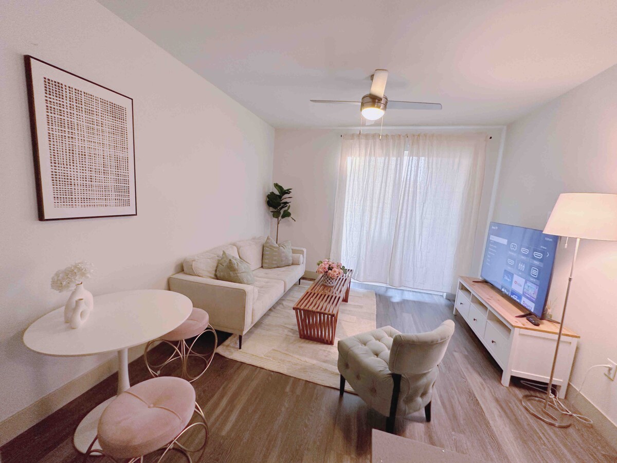 Ništa manje od SPEKTAKULARNOG, privatnog, spokojnog stana. BRAČNI krevet (ŠIRINE 180-220 cm). Spavanje na kauču nije obavezno. Tuš/kada. Približno 67 kvadratnih metara. Pametni TV od 65inča u dnevnoj sobi. U jedinici Mašina za pranje/sušenje veša (deterdžent). Potpuno opremljena kuhinja sa svime što vam treba za kratak ili duži boravak. Frižider sa ledomatom. BRZI Wi-Fi. Zajednički bazen, đakuzi i teretana. Potpuno dezinfikovano i čisto. Jedno dodijeljeno parking mjesto. Molimo vas da dođete u miru ili da uopšte ne dolazite. Uživajte