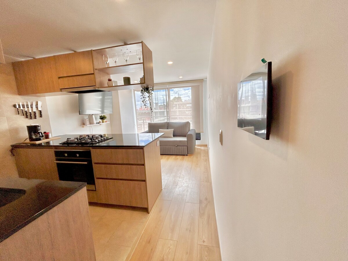 🤩 Pozivamo vas da rezervišete u najboljem dijelu Bogote! dijagonalno od parka El Virrey. Odličan za poslovna putovanja i turizam. U našem stanu ćete pronaći sve što vam je potrebno za idealan boravak: ✅ 2 Smartv ✅ Besplatna kafa ✅ Električni kamin ✅ Topla voda ✅ Zamračenje i motorizovana roletna Smart ✅ Bocina Darovita ✅ kuhinja ✅ Kauč za spavanje sa gnijezdom ✅ mini bar (uz doplatu) Bićete na pešačkoj udaljenosti od parka „Parque de la 93“, tržnog centra Andino, restorana i najboljih barova u gradu!