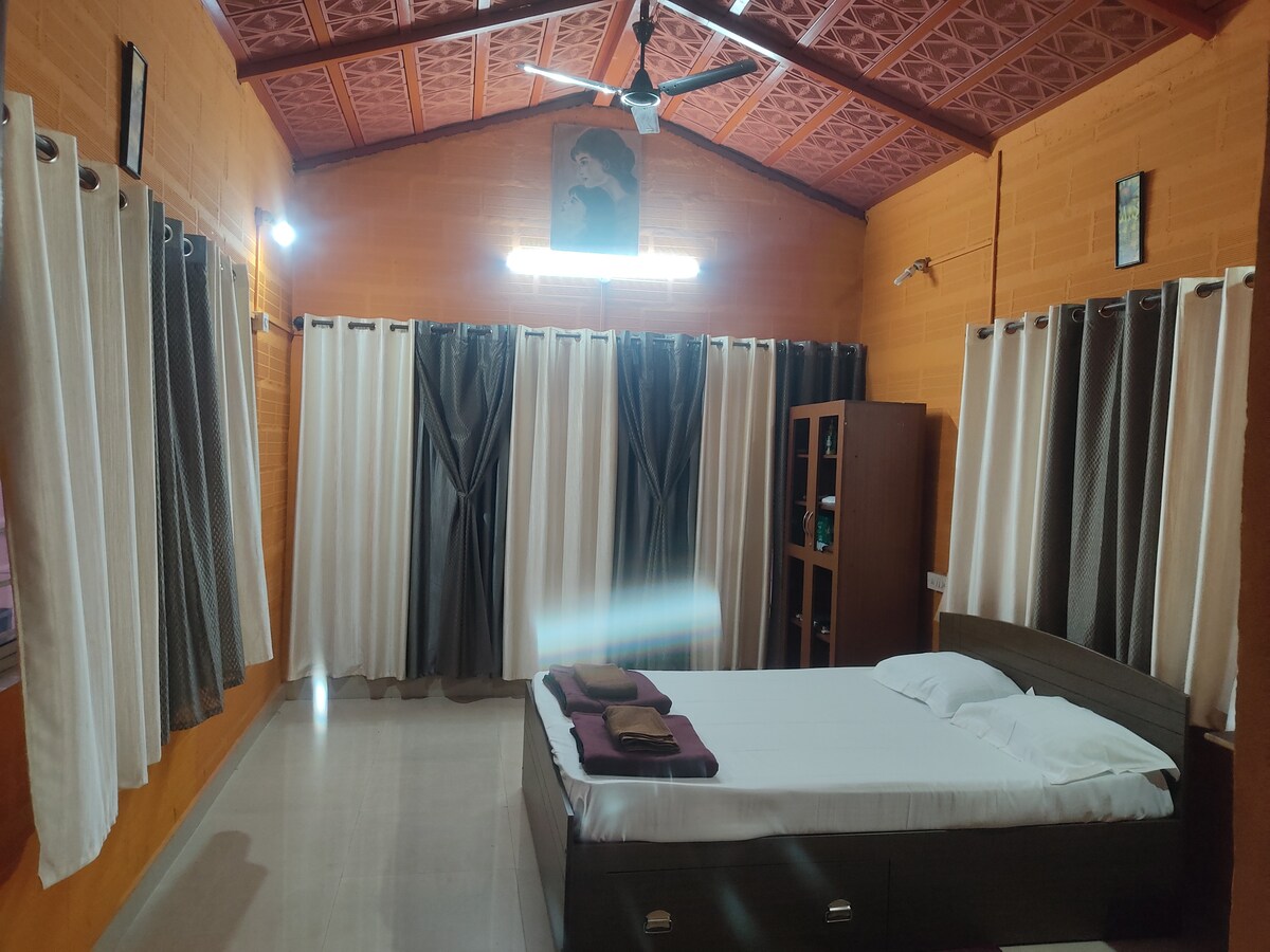 Moderan dom sa toplim drvenim detaljima i udobnim dekorom. Uživajte u elegantnom studiju s mnogo prirodnog svjetla. Nalazi se u centralnoj četvrti sa udobnim dnevnim boravkom, modernim namještajem i privatnom terasom. Savršeno za putnike koji putuju sami, par ili male porodice koje traže udobnost i praktičnost. Posebnosti gradske četvrti: 🌿 Nalazi se u bezbjednom stambenom području sa jednostavnim pristupom lokalnoj pijaci 🛍️ U blizini stanica metroa WTC, ORION Malleswarma, ISKCON, stanica metroa Kuvempu 🚙Dobro povezan sa glavnim putem.