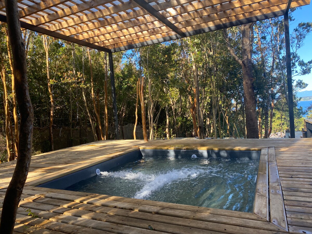Relájate con toda la familia en este tranquilo refugio en el bosque. Disfruta de la naturaleza con todas las comodidades que necesitas: 🌿 Tinaja caliente con hidromasaje (valor adicional de $35.000, uso ilimitado – se paga después de la reserva). 📶 Wifi 🔥 Parrilla ❄️ Aire acondicionado 🚗 Estacionamiento privado Todo esto, escondido en un hermoso bosque nativo, donde la privacidad y el relajo están asegurados.