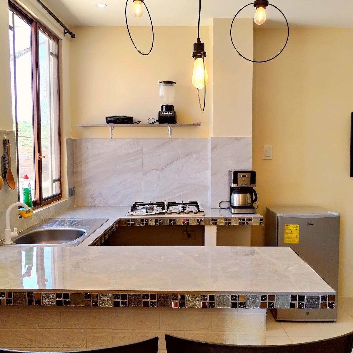 Uživajte u najboljem pogledu na Ajampe, prelijepi prostor. Smješten 7 minuta hoda od plaže, to je savršeno mjesto da se odvojite i ponovo povežete sa sobom. Opustite se dok posmatrate talase. Meditirajte ili praktikujte jogu u vrtu ispred kuće. Uživajte u zvuku okeana u mini apartmanu opremljenom svime što vam je potrebno za kuvanje i besplatnom kafom☕️. Pivo i vino 🍷 su dostupni za prodaju u jedinici. Imamo i privatni i zatvoreni parking sa nadzornim kamerama.