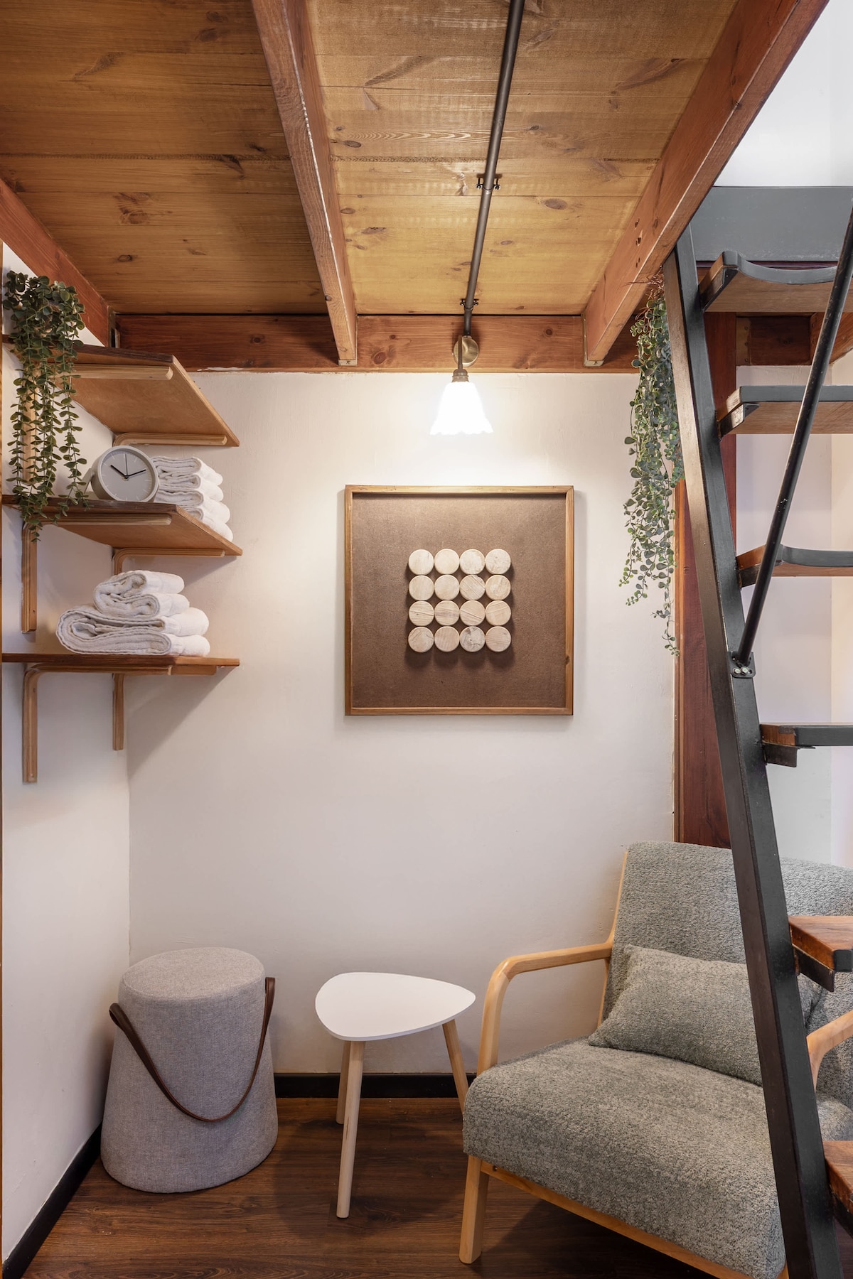 Dve drvene kuće koje su izgradili Deni i Hava sa velikom gracioznošću stoje u ogromnom vrtu ogromnih stabala aviona i oraha. U dvorištu se nalazi mnogo korisnih skulptura koje su dizajnirane sa mnogo humora od starih predmeta i smeća. Mjesto stvara posebnu atmosferu. Deca su ciljana publika, kao što se vidi iz drvene kuće izgrađene na vrhu drveta u bašti. Na donjem spratu brvnare je mesto za roditelje i dobro opremljena kuhinja. Gornja galerija je za decu