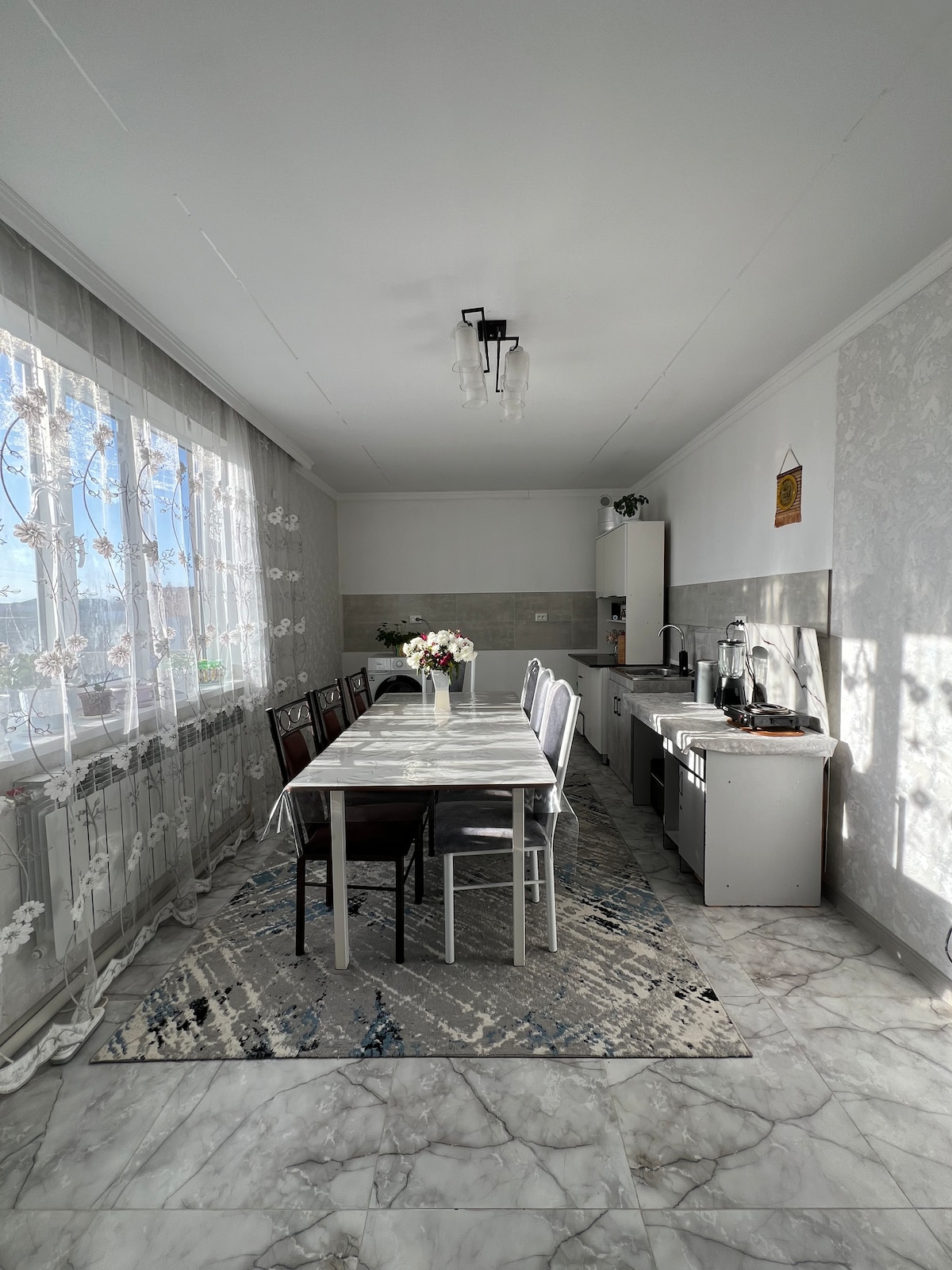 NOVA gostinjska kuća u etničkom stilu, kristalno čist vazduh i nevjerovatna atmosfera - savršeno utočište u Kirgistanu! Eko kuća. Na prvom spratu se nalazi veliki dnevni boravak u kojem se možete opustiti i kuhinja sa svim pogodnostima i uređajima. Na drugom spratu se nalaze 3 spavaće sobe, svaka sa 3 kreveta. Svaka spavaća soba u gostinjskoj kući ima WC šolju, umivaonik i tuš-kabinu. Bavimo se poljoprivredom. Postoji prelijepa bašta sa 4 platforme pored rijeke i 5 visećih ležaljki.