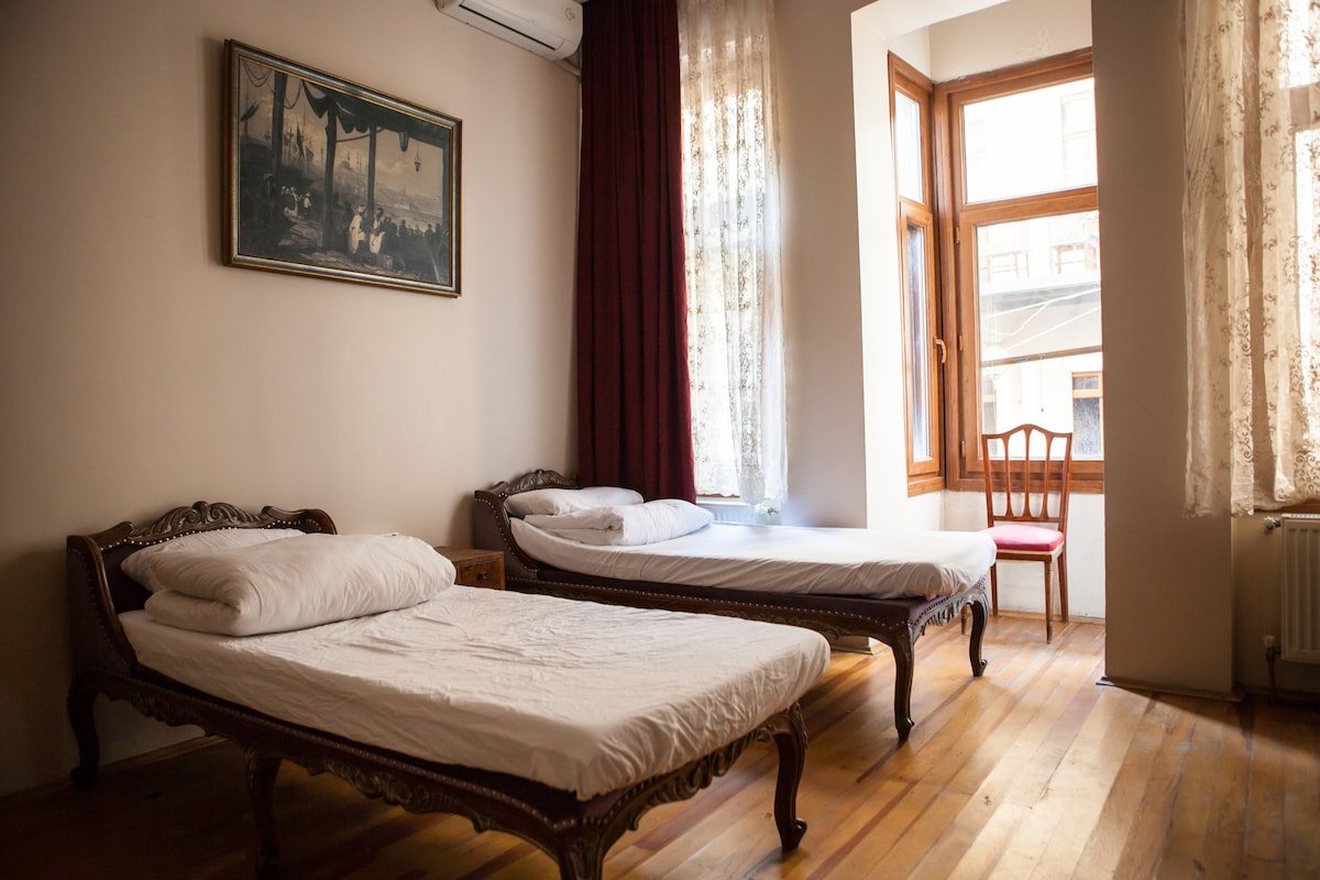 Vaša soba se takođe nalazi u Taksimu, srcu Bejoglua, na pješačkoj udaljenosti od Galataporta i Karakoja, u jednoj od najturističkijih gradskih četvrti na svijetu. Nalazi se u području gdje se non-stop prevoz može lako obaviti, možete da dostignete sve lične potrebe na pješačkoj udaljenosti, a možete pristupiti svim društvenim prostorima u skladu sa željama koje su u vašem interesu. Gostima mogu da pomognem non-stop na recepciji kako bi vaša udobnost bila na vrhu, gdje mogu da borave kao u svom domu.