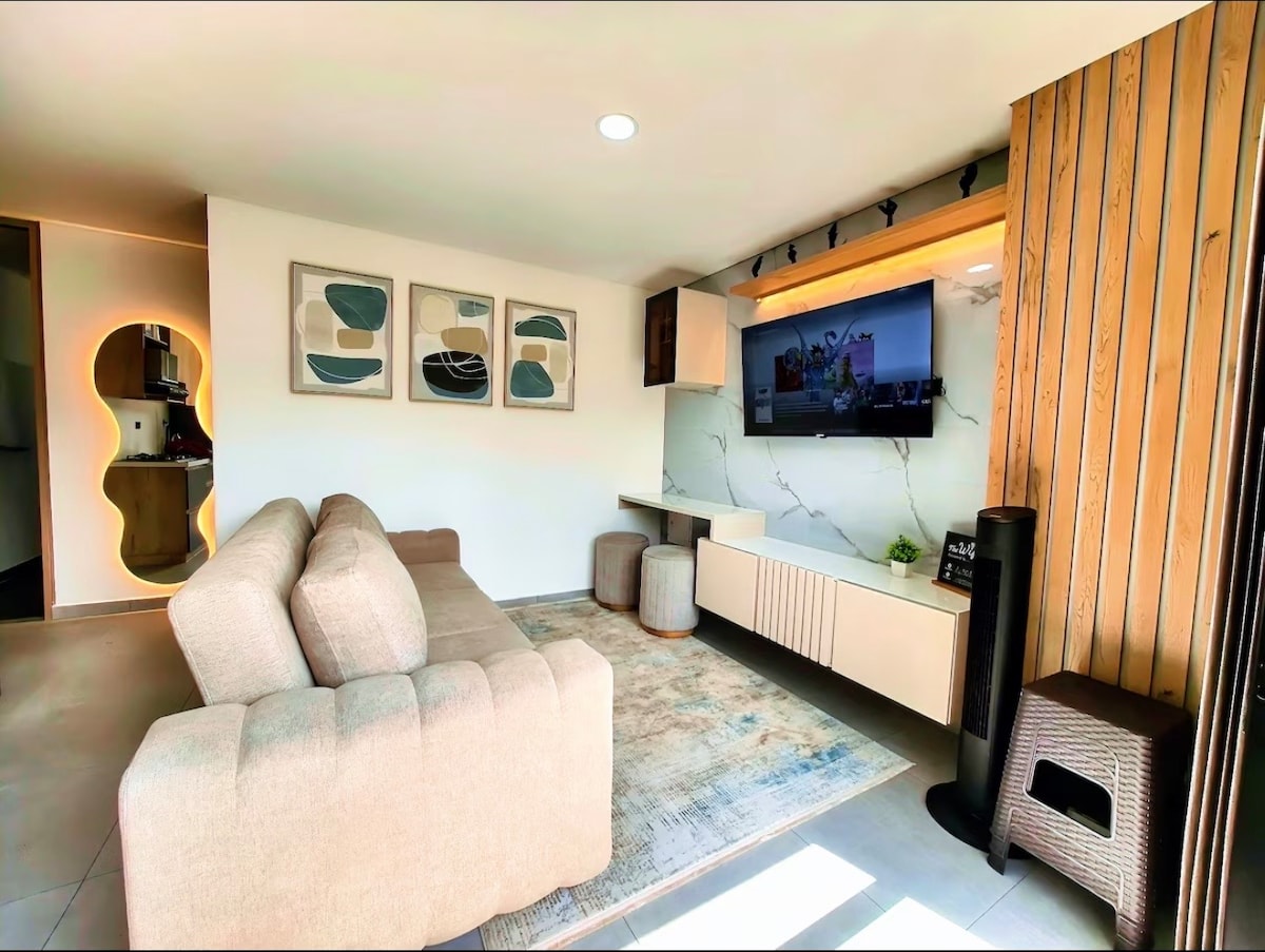 Moderno apartaestudio en el sur de Medellín, ubicado en una de las mejores zonas de Sabaneta, con fácil acceso a El Poblado, restaurantes, tiendas, parques y transporte público. A pocos minutos del centro comercial Mayorca Mega Plaza. Cuenta con una habitación con cama doble, aire acondicionado, dos TVs, wifi de alta velocidad, Netflix, sofá cama y cocina totalmente equipada. Ideal para parejas, viajes de trabajo o estancias cortas y largas.