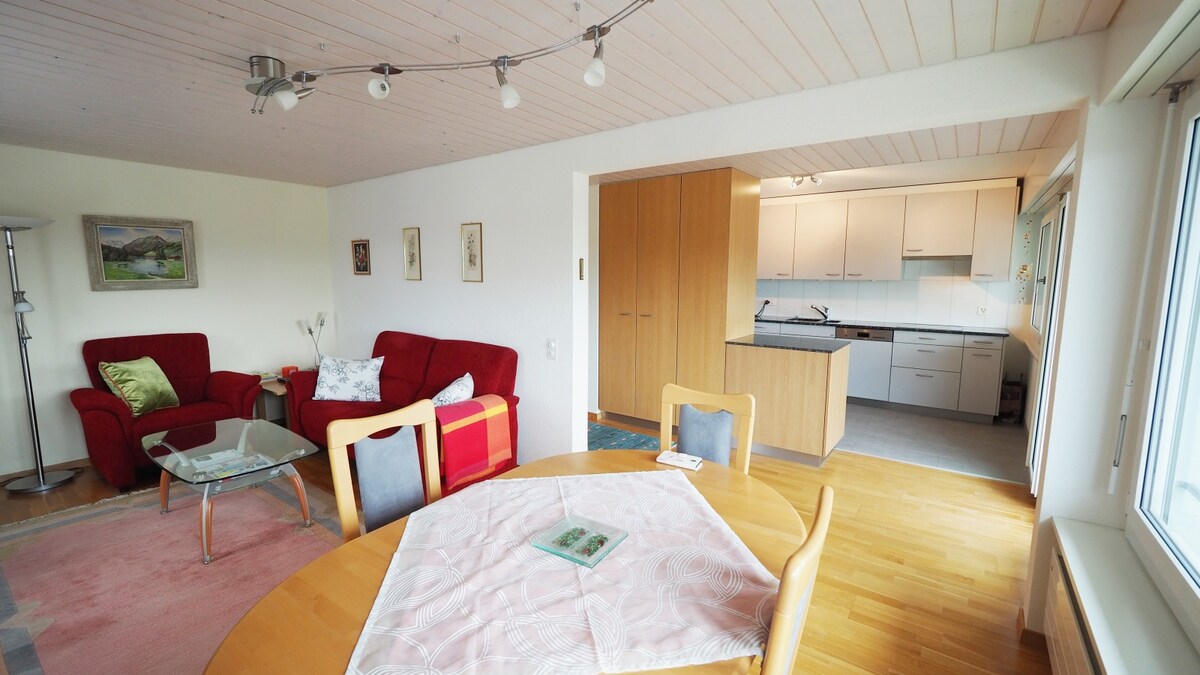Sa prelepim pogledom na Bernske Alpe, do stana sa javnim prevozom možete stići za 10 minuta od železničke stanice. Vrlo blizu centra Pol Klee & Rosengarten s pogledom na Bernske Alpe. Prostrani stan je pogodan i za opuštajuće praznike i za poslovni boravak. Prostrana bašta vas poziva da ostanete.