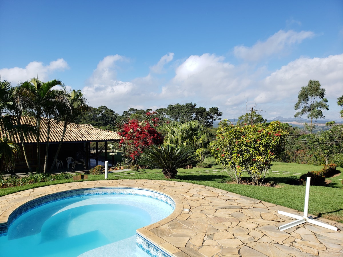 „Šumovita farma sa udobnom kućom u prizemlju, otvorenim konceptom sobe sa potpuno opremljenom integrisanom kuhinjom, prirodnim svetlom i udobnošću. Izolada. Odličan prostor za odmor i ukusna bašta za opuštanje i provođenje nezaboravnih trenutaka sa porodicom ili prijateljima i uživanje u dobrom roštilju ili pici. Nalazi se na farmi, konji, krave muzare, telad, okružen zelenilom, jezero za pecanje, staze, samo 15 minuta od centra Indajatube u regionu Kampinas (20 minuta od Virakopos).“