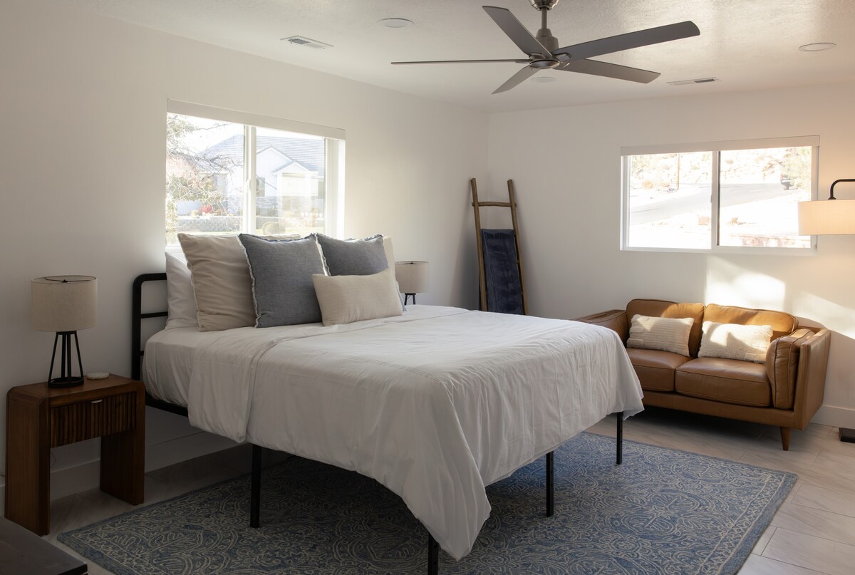 Udobno u ovom modernom prostoru iz sredine veka, nedaleko od lepote nacionalnog parka Zion. Naše 2-sobno utočište sa 1 kupatilom idealna je baza za uživanje u svemu što Južna Juta nudi. Bez obzira na to da li planinarite parkove, vozite bicikl na stazama ili kupujete St. George, odmorićete se i resetovati u mirnom dvorištu u hladu sa ležaljkama, roštiljem i privatnom hidromasažnom kadom. Uživajte u svim pogodnostima doma sa kompletnom kuhinjom i vešerom na licu mesta.