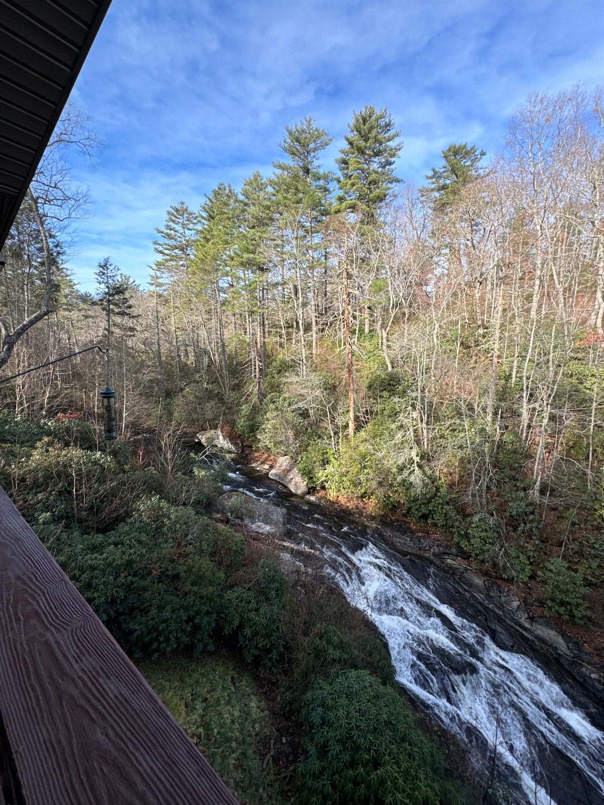 Naš dom je udobno, privatno skrovište u sredini grada Hajlands. Iako se deluje kao da je komšiluk miran, skriveni deo grada, možete da prošetate do glavne ulice za nekoliko minuta (i novo za 2023. godinu, postoje trotoari celim putem do grada!). Gledanje zalaska sunca iza planina sa naše verande je savršen način da završite dan. I bonus, udaljeni smo samo nekoliko koraka od čuvene pekare Edelvajs!