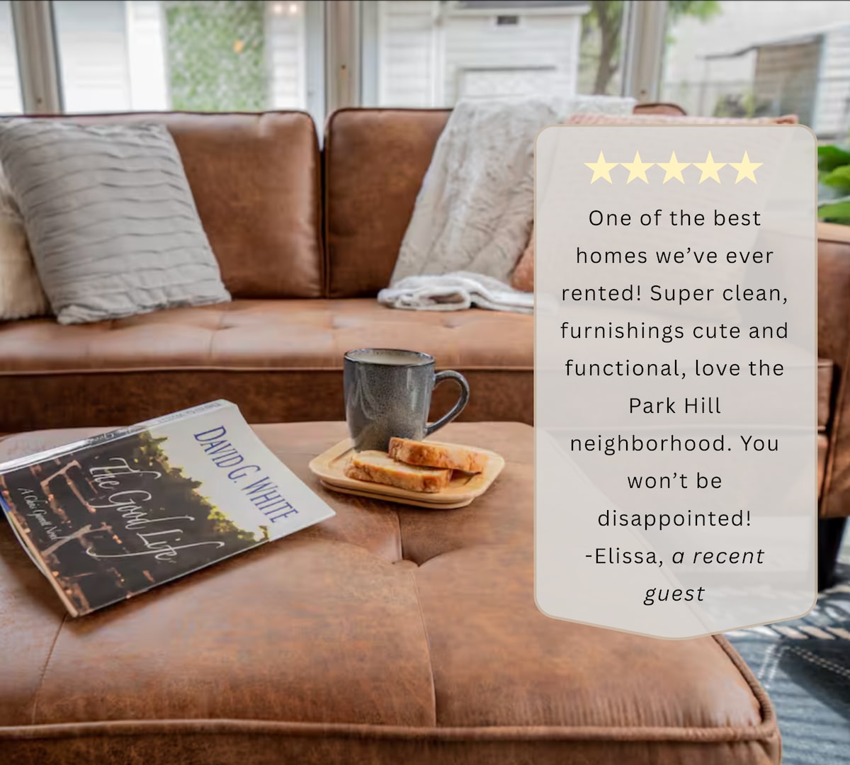 Come be our guest in our stylish 3 bedroom, 2 bath bungalow. Every detail of the home has your comfort and enjoyment in mind. Out of town guests couldn't ask for a more convenient location just off the interstate yet tucked into the gorgeous Park Hill neighborhood. The home is child and pet-friendly (all pets must be house-trained and do have a one time $35 pet fee). Whether you stay for a night or a week, you'll wish it could be longer!