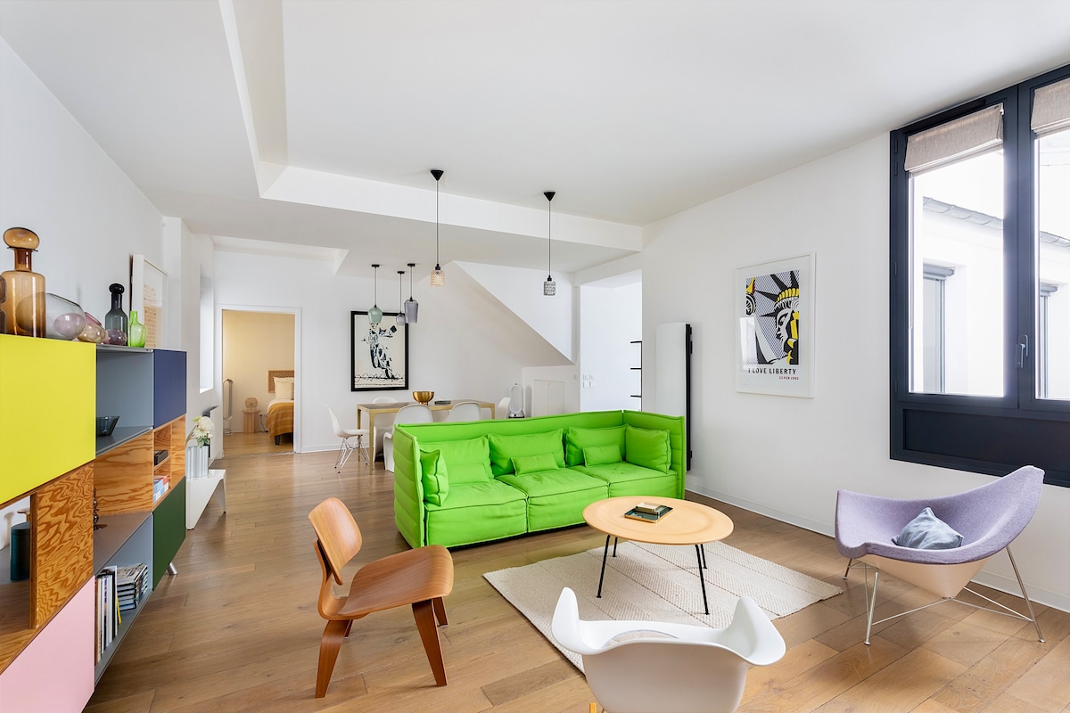 Zapanjujući pariski stan od 160 m², smešten u zgradi iz 1830. godine. Ovaj nekadašnji hôtel particulier, sa fasadom isklesanom u kamenu, renoviran je u buržoasku rezidenciju sa visokim plafonima i prostranim sobama. Dekor je eklektičan, kombinuje skulpture, slike i predmete prikupljene tokom vremena. Idealno smešten u blizini kanala Sen-Marten i severnog dela Maroa, u jednoj od najtraženijih pariskih četvrti, okružen modernim restoranima, barovima i buticima.