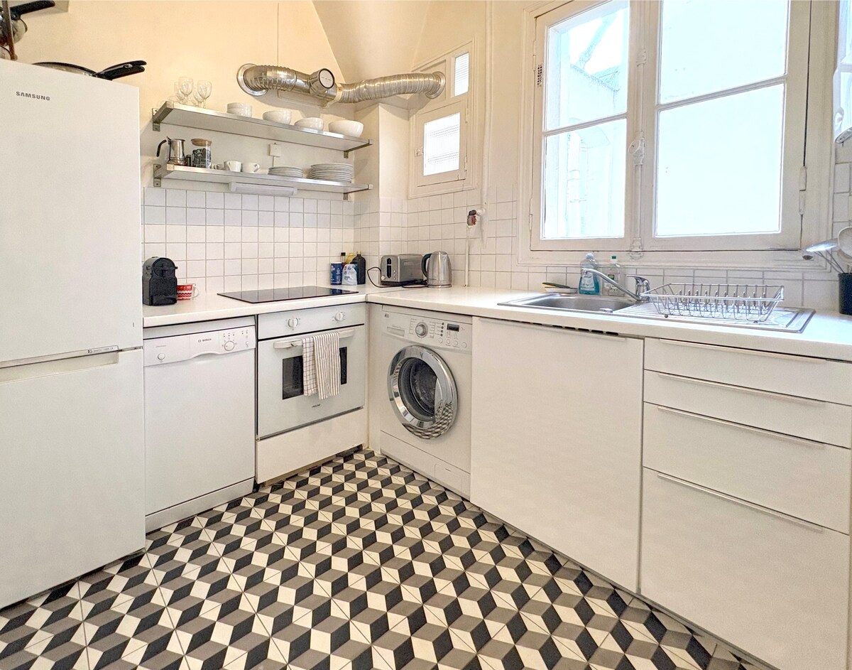 Klimatizovani stan od 60 m2 sa luksuznim rasporedom u samom centru pariškog istorijskog okruga Montorgejl, poznatog po prodavnicama hrane, malim bistroima i restoranima. Stan se nalazi na 1. spratu zgrade u veoma mirnoj ulici. Renoviran je 2023. godine od strane poznatog arhitekte i stoga je vrlo dobro uređen sa sadržajima vrlo visokog standarda. Bićete tamo kao u hotelskom apartmanu sa šarmom, pored toga, pravi pariški smještaj.