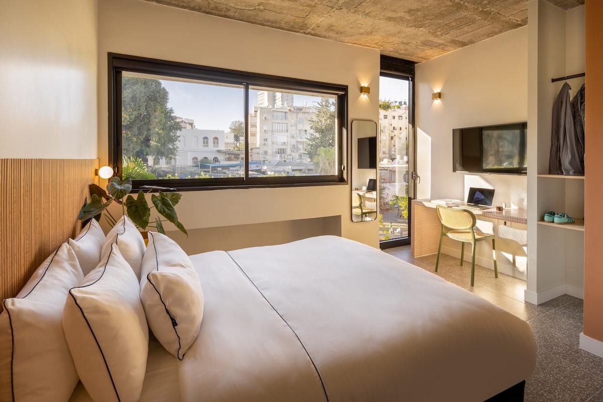 Moderan luksuzni studio sa terasom. Smještaj se nalazi u srcu Neve Zedek, samo nekoliko koraka od Sredozemnog mora, neverovatnih restorana, butika i vrlo kratke šetnje od parka Čarls Klore. Kombinujući autentičnost sa modernošću, predivnim pogledom na Sredozemno more, mirom i tišinom i pristupom najboljem što Tel Aviv ima da ponudi. Da biste živeli u jedinstvenom delu grada sa mirnom i živopisnom atmosferom.