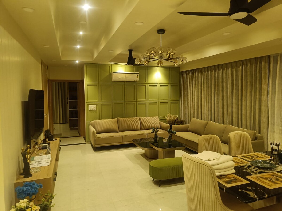 Private 3 Bedroom (3BHK) luxury apartment – no sharing Entire floor to yourself – complete privacy 4 bathrooms (attached to all bedrooms + 1 extra) Bright, airy home with lots of sunlight & ventilation Located close to top cafes & restaurants Privacy & feel of a home with fully functional and well equipped kitchen. AC in all rooms & living area • Curtains in all rooms • 65” Smart TV in living area + WiFi • Washing machine • keyless entry • Lift • Power backup • Fresh linens & toiletries